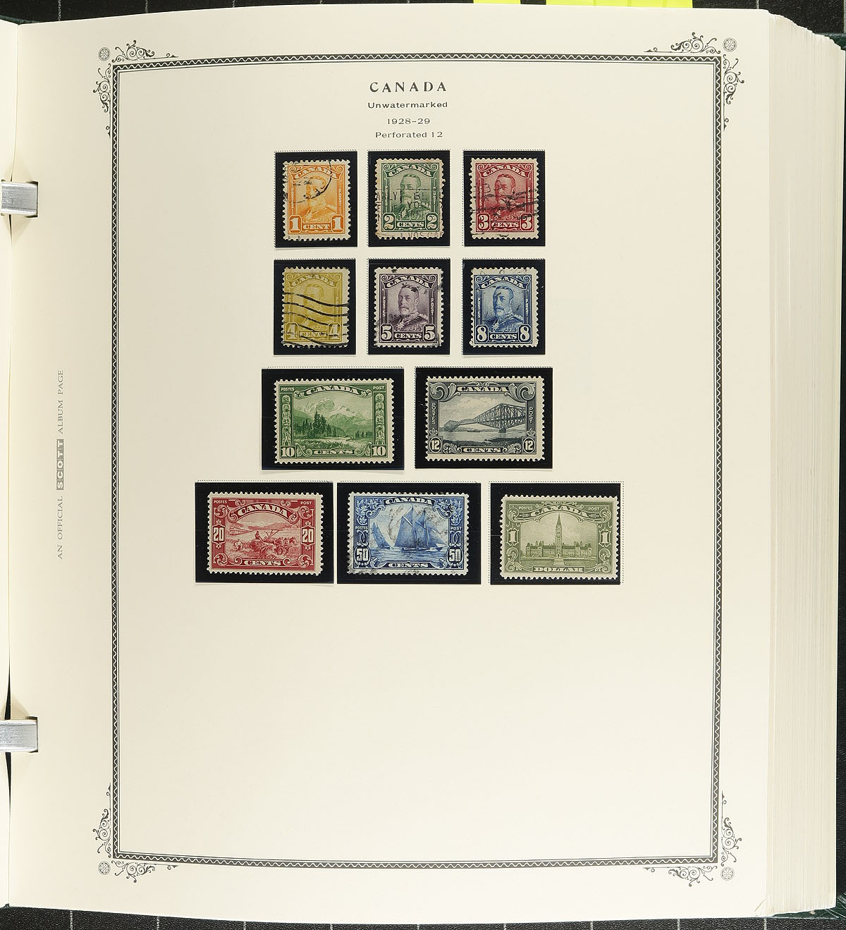 Collection of mint and used Canada in a Scott Specialty album, 1859-1995. This well organized collection ranges from Scott #14/1583, beginning with used classics with Scott #s 14-15, 17-20, Large Queens (x10, 1/2c to 15c), Small Queens (x16, including 10c (x2), 20c and 50c Widow Weeds), Jubilees from 1/2c to 50c, along with mint and or used sets of Quebecs, Admirals (noting several mint coils), Scrolls (used 50c Bluenose, and mh $1 Parliament), Arch, Pictorials, War, and mint hinged set of Peace issues. The continues with a near complete collection of primarily never hinged issues from 1952 to 1995, including souvenir sheets, panes, coils, and tagged issues. A spot check indicated some stamps cataloguing $10 to $25 and up, with face value alone in excess of $400. Some of the early stamps have small faults including trimmed perfs, small thins, or have no gum, with the majority of stamps being fine to very fine. A potentially high cataloguing collection and should be continued until complete, online photos show a sampling. Estimate =