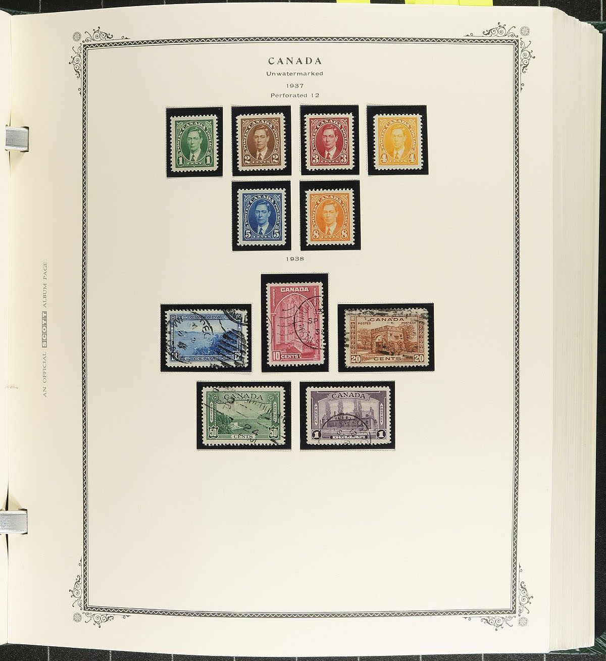 Collection of mint and used Canada in a Scott Specialty album, 1859-1995. This well organized collection ranges from Scott #14/1583, beginning with used classics with Scott #s 14-15, 17-20, Large Queens (x10, 1/2c to 15c), Small Queens (x16, including 10c (x2), 20c and 50c Widow Weeds), Jubilees from 1/2c to 50c, along with mint and or used sets of Quebecs, Admirals (noting several mint coils), Scrolls (used 50c Bluenose, and mh $1 Parliament), Arch, Pictorials, War, and mint hinged set of Peace issues. The continues with a near complete collection of primarily never hinged issues from 1952 to 1995, including souvenir sheets, panes, coils, and tagged issues. A spot check indicated some stamps cataloguing $10 to $25 and up, with face value alone in excess of $400. Some of the early stamps have small faults including trimmed perfs, small thins, or have no gum, with the majority of stamps being fine to very fine. A potentially high cataloguing collection and should be continued until complete, online photos show a sampling. Estimate =