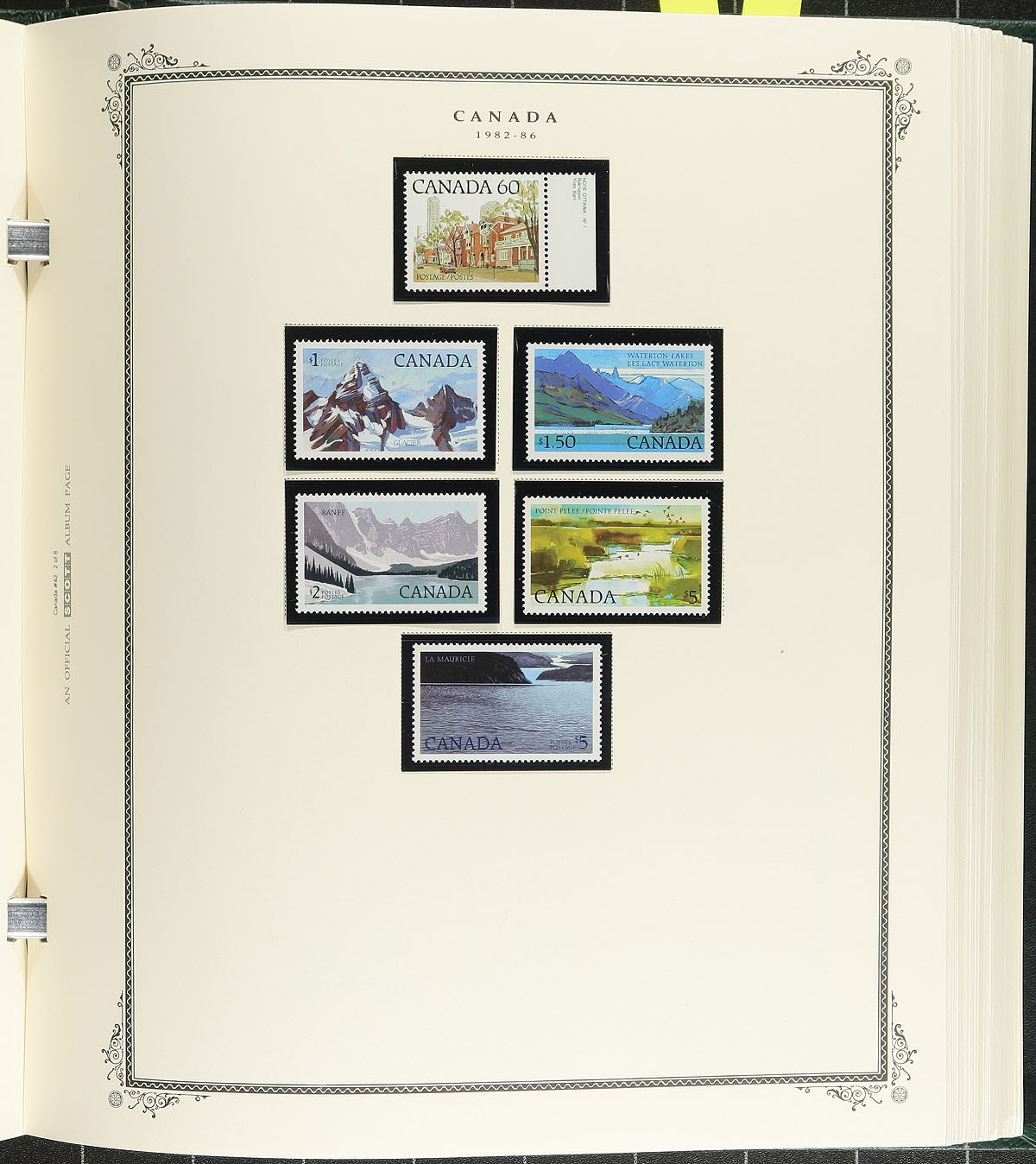 Collection of mint and used Canada in a Scott Specialty album, 1859-1995. This well organized collection ranges from Scott #14/1583, beginning with used classics with Scott #s 14-15, 17-20, Large Queens (x10, 1/2c to 15c), Small Queens (x16, including 10c (x2), 20c and 50c Widow Weeds), Jubilees from 1/2c to 50c, along with mint and or used sets of Quebecs, Admirals (noting several mint coils), Scrolls (used 50c Bluenose, and mh $1 Parliament), Arch, Pictorials, War, and mint hinged set of Peace issues. The continues with a near complete collection of primarily never hinged issues from 1952 to 1995, including souvenir sheets, panes, coils, and tagged issues. A spot check indicated some stamps cataloguing $10 to $25 and up, with face value alone in excess of $400. Some of the early stamps have small faults including trimmed perfs, small thins, or have no gum, with the majority of stamps being fine to very fine. A potentially high cataloguing collection and should be continued until complete, online photos show a sampling. Estimate =