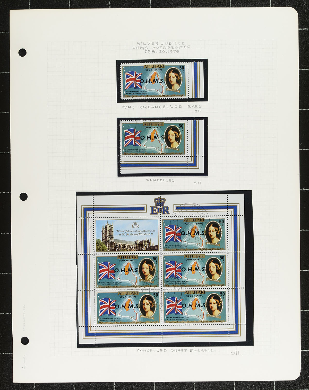 Collection of primarily never hinged 1977 Silver Jubilee issues, containing many hundreds of stamps in roughly 70 album or stock pages in a binder. The collection has representation from about a dozen countries including Falkland Islands, Antigua, Cook Islands, Bermuda, etc., noting singles, sets, souvenir sheets, and booklets, commemorating the Silver Jubilee. The collection also includes a few other Omnibus issues, and some CAPEX 1978 material. A nice lot for the Commonwealth collector. Estimate =