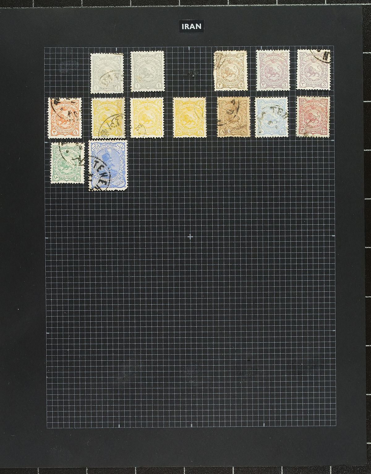 An old time collection of mint and used Iran, 1876-1952, containing a few hundred different stamps on 15 quadrille pages. A cursory check indicated mostly used material with some mint stamps throughout, noting some stamps cataloguing $5 to $10 each. Overall fine to better, with a few faults noted, with all pages photographed online. A nice starter group from this interesting area of philately. Estimate =