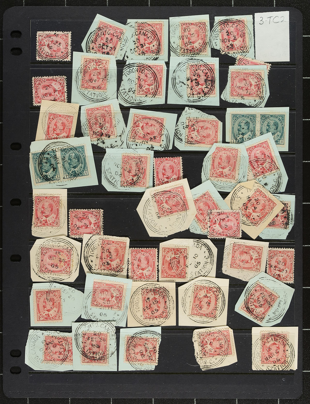 Specialized collection of Toronto 'Orb' postmarks, containing roughly 180 stamps in a few stock pages. The collection contains stamps on and off piece, all on Edward VII issues, noting postmarks with and without sidemarks, but unchecked for timemarks, errors, or other hammer characteristics. A nice lot that would benefit from future study by the specialist. Well worth our estimate. Estimate =