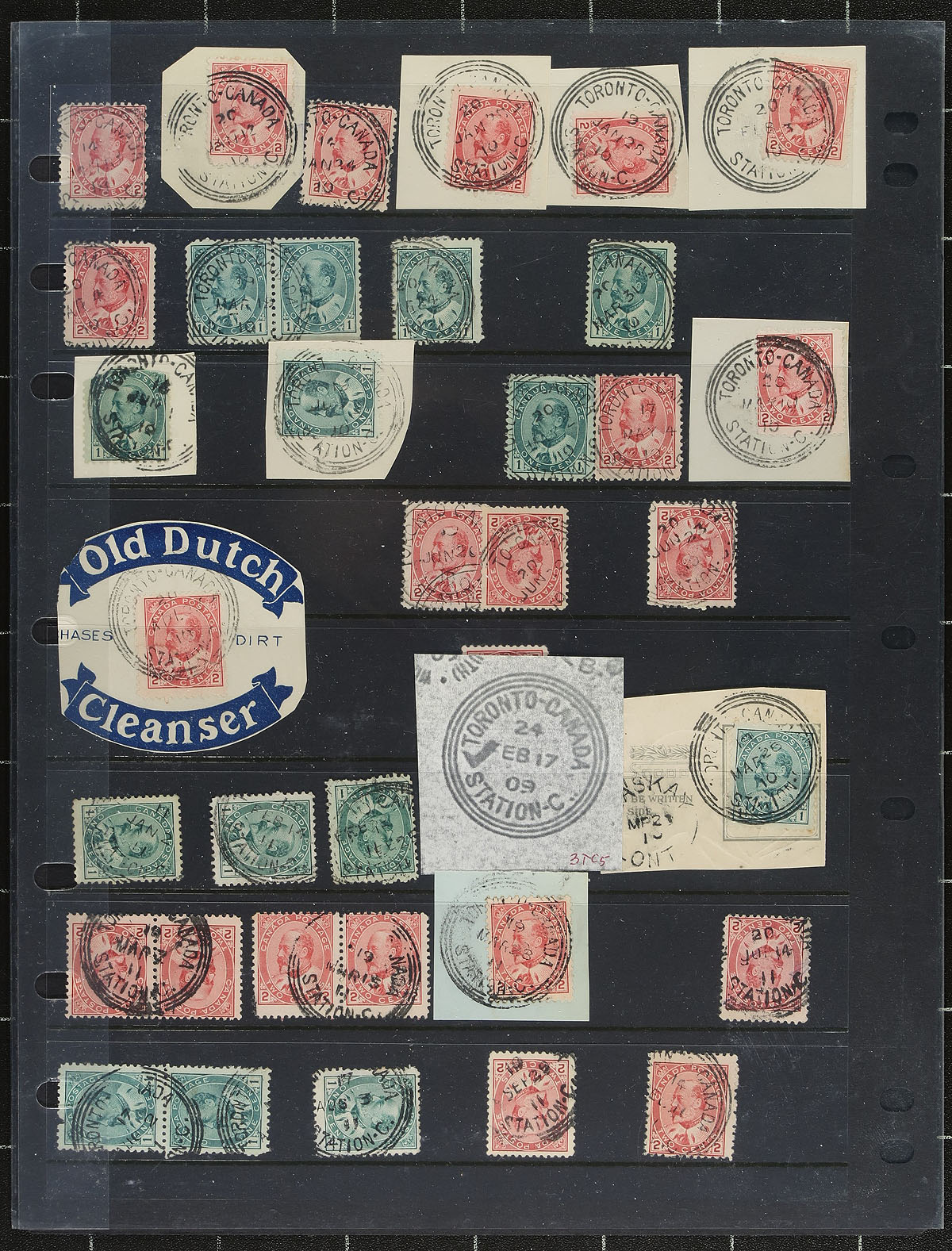 Specialized collection of Toronto 'Orb' postmarks, containing roughly 180 stamps in a few stock pages. The collection contains stamps on and off piece, all on Edward VII issues, noting postmarks with and without sidemarks, but unchecked for timemarks, errors, or other hammer characteristics. A nice lot that would benefit from future study by the specialist. Well worth our estimate. Estimate =