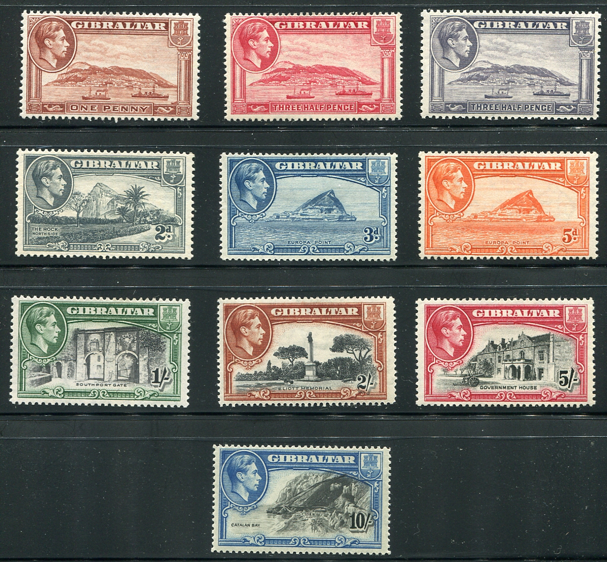 Group of mint George VI Pictorial issues, with perforation varieties. Includes Scott #108, 109, 109A, 110c, 111a, 112, 114, 115, 116b and 117a. Mostly Lightly Hinged, with the high-value being Never Hinged. The Stanley Gibbons numbers are 122b, 123, 123b, 125c, 124b, 125a, 127b, 128, 129a and 130 (Gibbons cat £381.00). 2026 Scott US$259.00 =