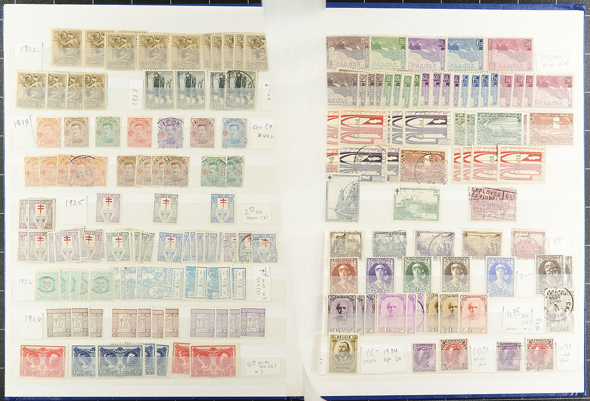 Belgium & Austria, collector's hoard. A 32-page Lighthouse stockbook, stuffed with an accumulation of Belgium and Austria, including 1,777 Belgian regular issues, 458 Belgian semi-postals and 158 Austrian issues. A mix of mint and used, and while expect the odd fault, we noted better values and postmark interest throughout. Estimate =
