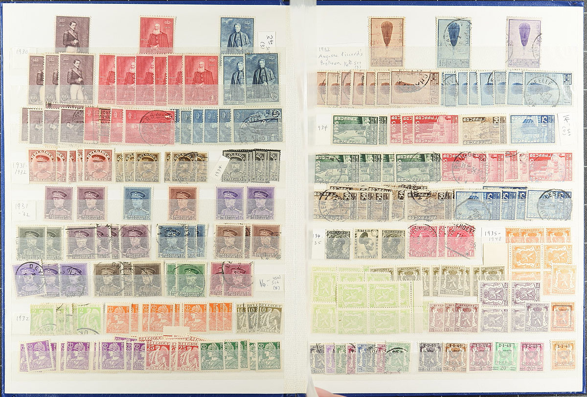 Belgium & Austria, collector's hoard. A 32-page Lighthouse stockbook, stuffed with an accumulation of Belgium and Austria, including 1,777 Belgian regular issues, 458 Belgian semi-postals and 158 Austrian issues. A mix of mint and used, and while expect the odd fault, we noted better values and postmark interest throughout. Estimate =