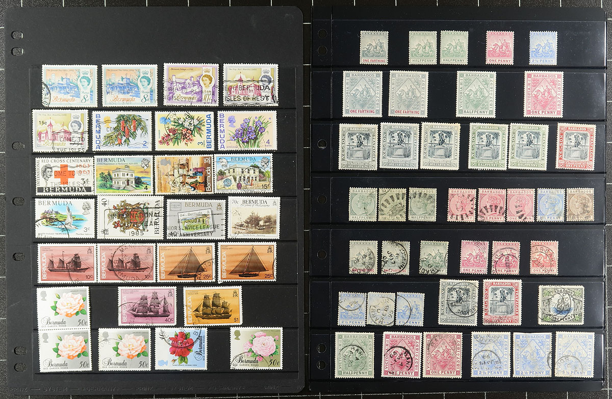 Mint and used collector's stock of issues, with duplication, laid out on stockpages. Several better noted (see owner's inventory sheet), along with postmark interest. Owner's 2020 Scott of the Barbados catalogues US$424.00 = $572.40 CDN alone. Estimate =