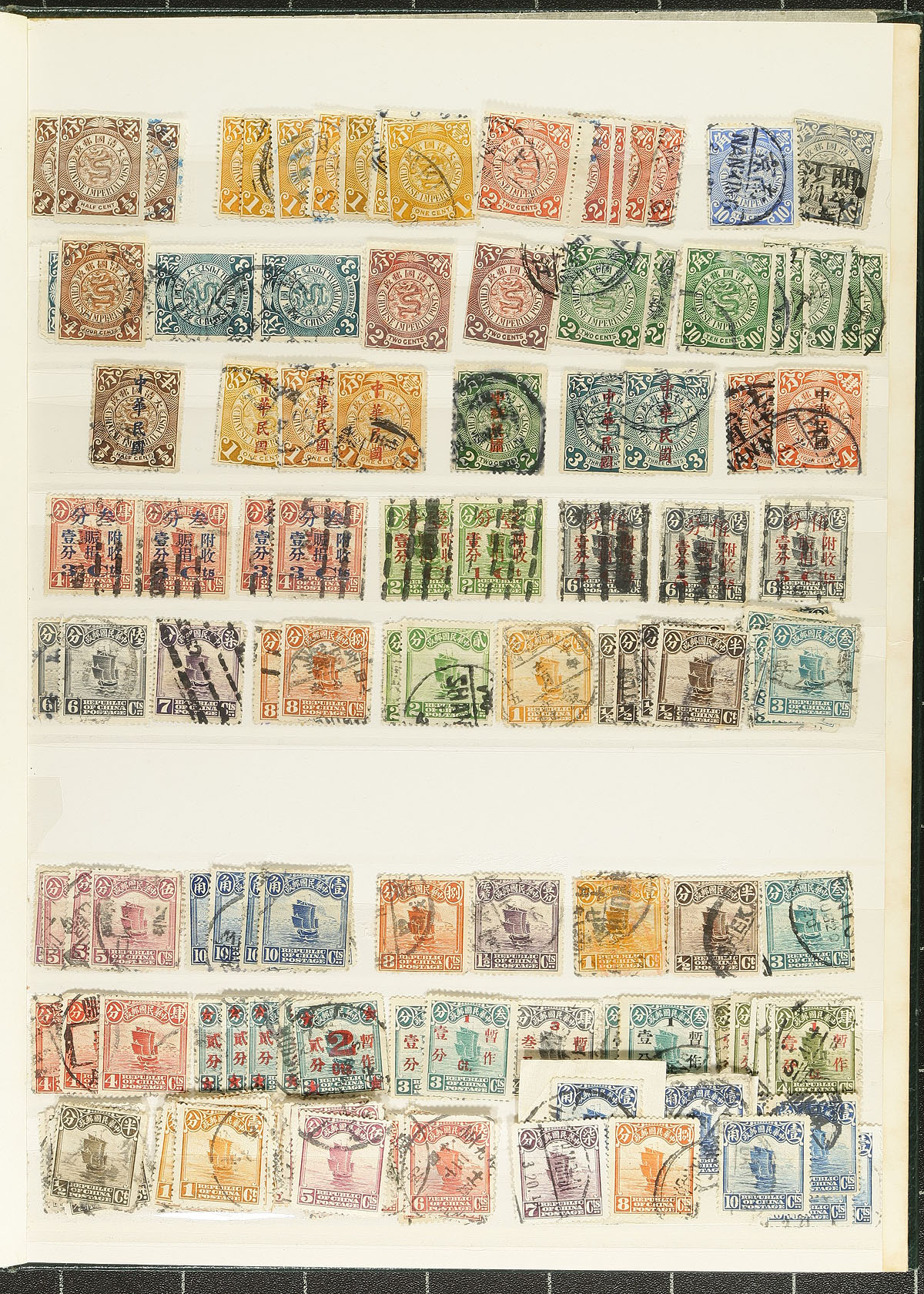 Old-time collectors stash of China / PRC China and ROC China, mint and used, assembled in a 16-page stockbook. Lots of better items noted, including postmarks. Totally unchecked for better overprints, reprints etc. Truly offered as-received. An excellent opportunity for study of these often complicated issues. Estimate =