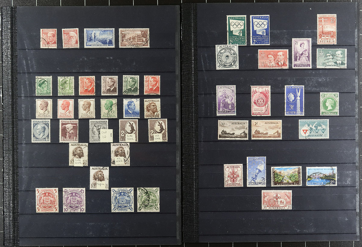 A nice quality used collection 1920's to 1970's, generally fine or better, with mostly unobtrusive postmarks, cover the "post-Kangaroos and Heads period", up to 1970. Fairly complete for the period, with only a few holes here and there. An excellent lot for the new Australian collector, or anyone interested in a "used compliment" to an existing mint collection. Many perforation varieties and some watermark varieties, as noted by the previous owner. A few "back of the book" and some un-counted duplicates round-out this group. Owner's 2021 Scott US$580.00 =