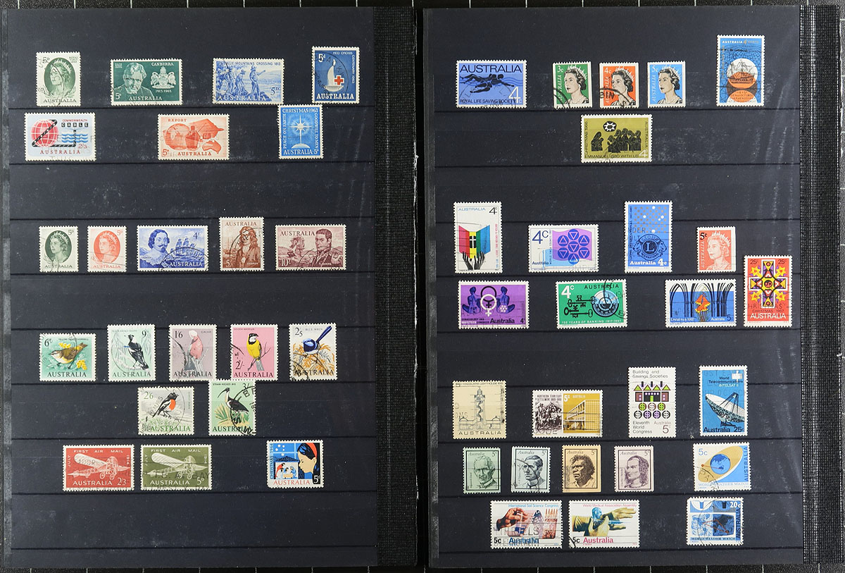 A nice quality used collection 1920's to 1970's, generally fine or better, with mostly unobtrusive postmarks, cover the "post-Kangaroos and Heads period", up to 1970. Fairly complete for the period, with only a few holes here and there. An excellent lot for the new Australian collector, or anyone interested in a "used compliment" to an existing mint collection. Many perforation varieties and some watermark varieties, as noted by the previous owner. A few "back of the book" and some un-counted duplicates round-out this group. Owner's 2021 Scott US$580.00 =