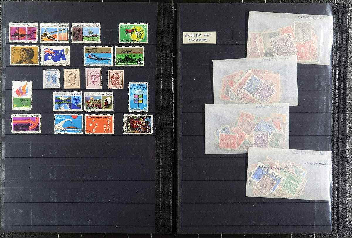 A nice quality used collection 1920's to 1970's, generally fine or better, with mostly unobtrusive postmarks, cover the "post-Kangaroos and Heads period", up to 1970. Fairly complete for the period, with only a few holes here and there. An excellent lot for the new Australian collector, or anyone interested in a "used compliment" to an existing mint collection. Many perforation varieties and some watermark varieties, as noted by the previous owner. A few "back of the book" and some un-counted duplicates round-out this group. Owner's 2021 Scott US$580.00 =