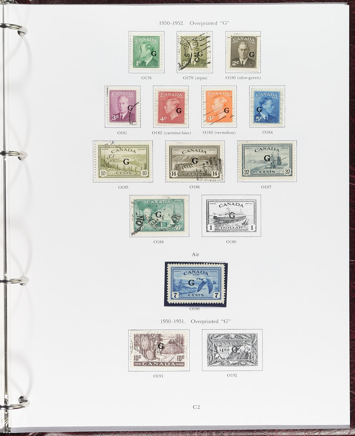 Lovely collection of used Canada in 5 Deluxe padded Stanley Gibbons 4-ring binders with original cardboard outer box, 1859-2018. This well organized lot ranges from Scott #14/3134 (collection is on Stanley Gibbons pages with S.G. numbers), and begins with Scott #s 14 (x2, partially dated postmarks), 15, 21-26, 27 (x3), 28 (x2), 29, also includes 24a Bothwell watermark paper (BO), along with a small selection of Small Queens (note 20c and 50c Widow Weeds), short set of Jubilees from 1/2c to 50c, and continues with mostly partial sets and a few complete sets of Numerals, Scrolls, War, and Peace issues, noting some stamps cataloguing $10 to $20 and up. The collection continues with singles, blocks, souvenir sheets, along with an attempt to reconstruct panes and souvenir sheets, and is fairly complete up to 2005, with sporadically filled pages up to 2018. A wonderful opportunity to continue this collection in high quality albums which originally retailed in the many hundreds of dollars. Our online photos show a sampling. Estimate =