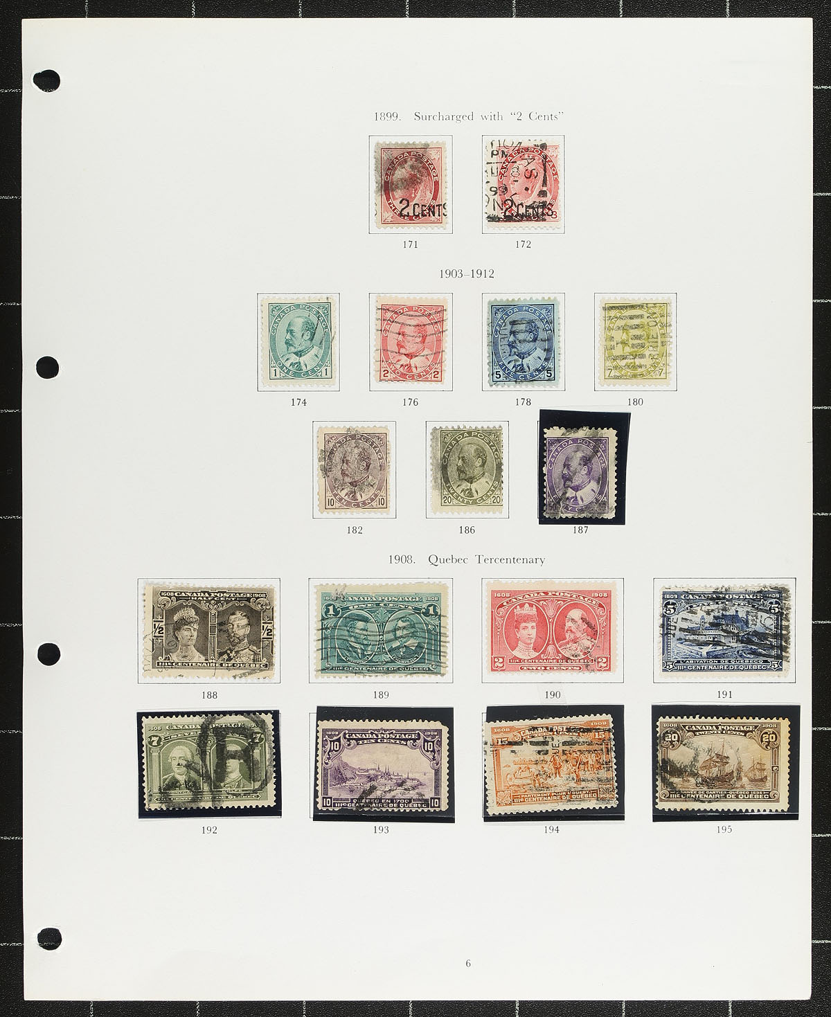 Collection of used Canada in a Minkus album, 1859-1979. This fairly well organized collection contains many hundreds of stamps ranging from Scott #14/846, beginning with #s 14-15, a small selection of Large and Small Queens (noting 20c and 50c Widow Weeds), full sets of Numerals, Edwards, Quebecs, Admirals, Scrolls (50c Bluenose (x2)), Arch, Pictorials, up to the Peace issues. The lot also includes a few presentation folders, blocks, and extra album pages. Some faults with a few of the early issues, still a nice starter collection with a few better items within. Estimate =