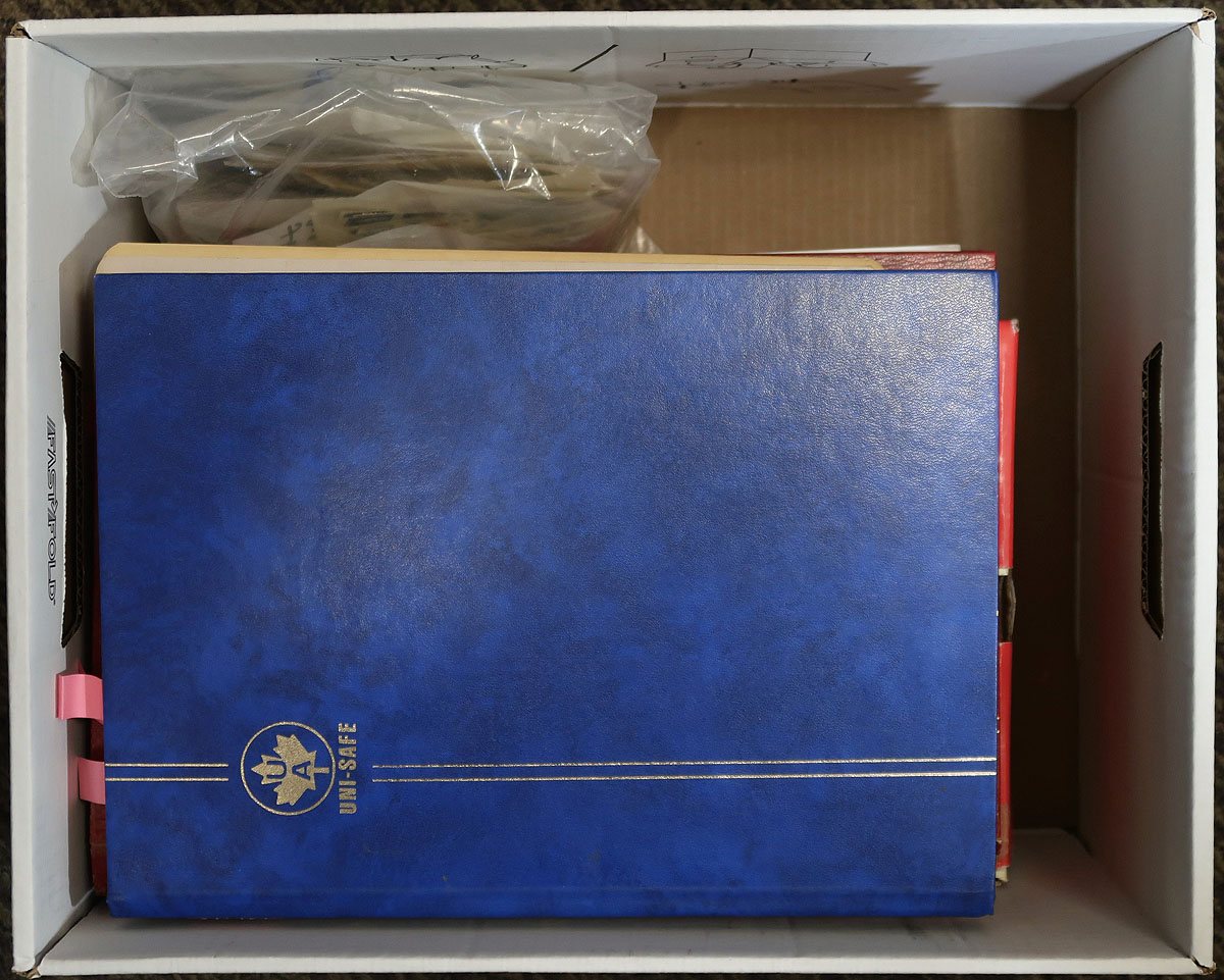 Large accumulation of used Canada, Small Queens to the 2000's. The lot contains roughly 30,000 stamps in a variety of formats including 3 stockbooks, envelopes, glassines, and bundleware. Surprisingly enough, this is a well organized accumulation with the 3 stockbooks containing material from the Small Queens to the post 2000's, noting several high value denominations, sets, earlier material, used 'P' values, souvenir sheets, etc. The lot also contains well identified envelopes, glassines and over 100 bundles of 100 stamps each, containing singles and pairs, generally from the 1950's to the 1970's. A nice lot with some better cataloguing items, and unchecked for better town cancels, overall fine to very. Estimate =