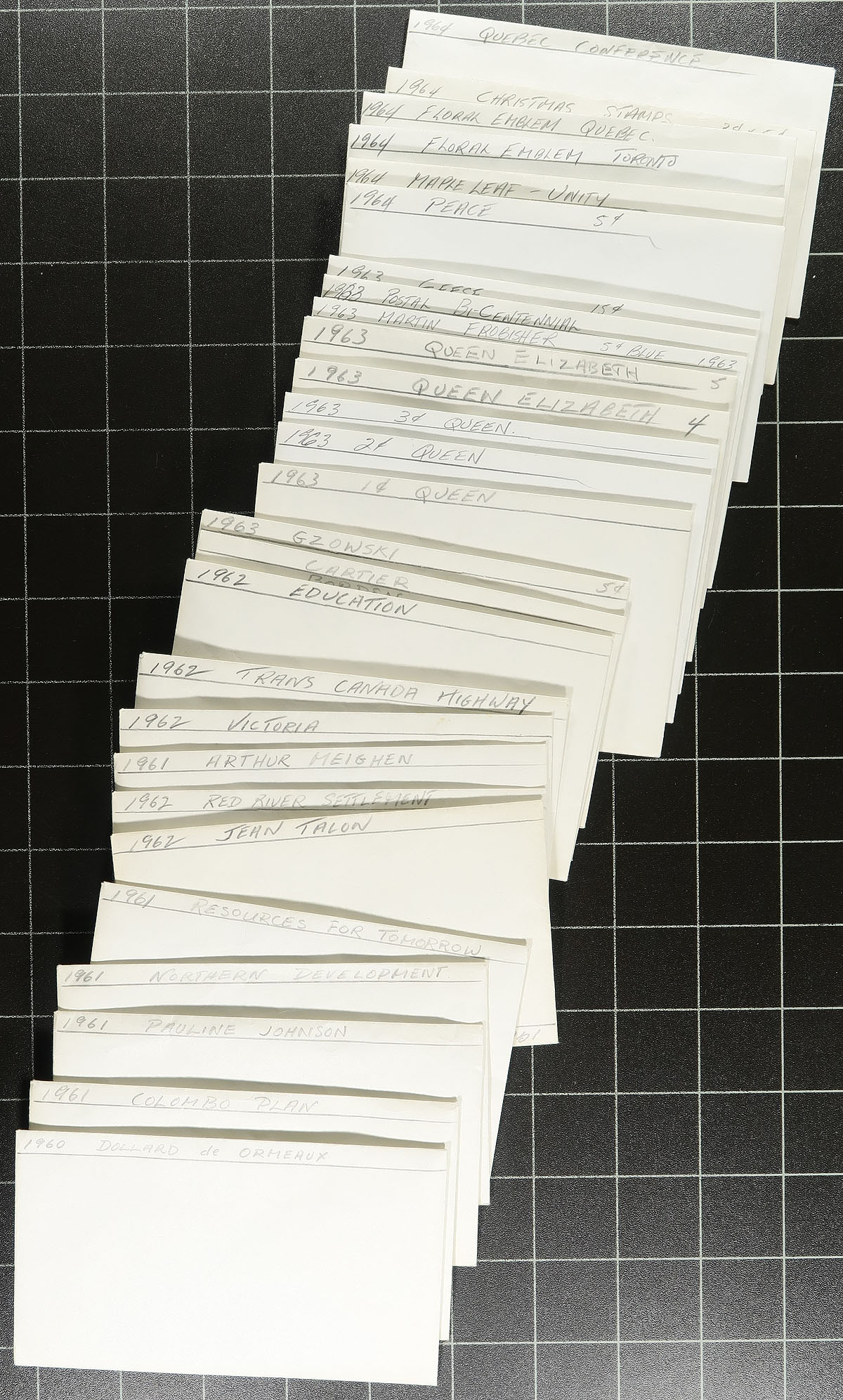 Large accumulation of used Canada, Small Queens to the 2000's. The lot contains roughly 30,000 stamps in a variety of formats including 3 stockbooks, envelopes, glassines, and bundleware. Surprisingly enough, this is a well organized accumulation with the 3 stockbooks containing material from the Small Queens to the post 2000's, noting several high value denominations, sets, earlier material, used 'P' values, souvenir sheets, etc. The lot also contains well identified envelopes, glassines and over 100 bundles of 100 stamps each, containing singles and pairs, generally from the 1950's to the 1970's. A nice lot with some better cataloguing items, and unchecked for better town cancels, overall fine to very. Estimate =
