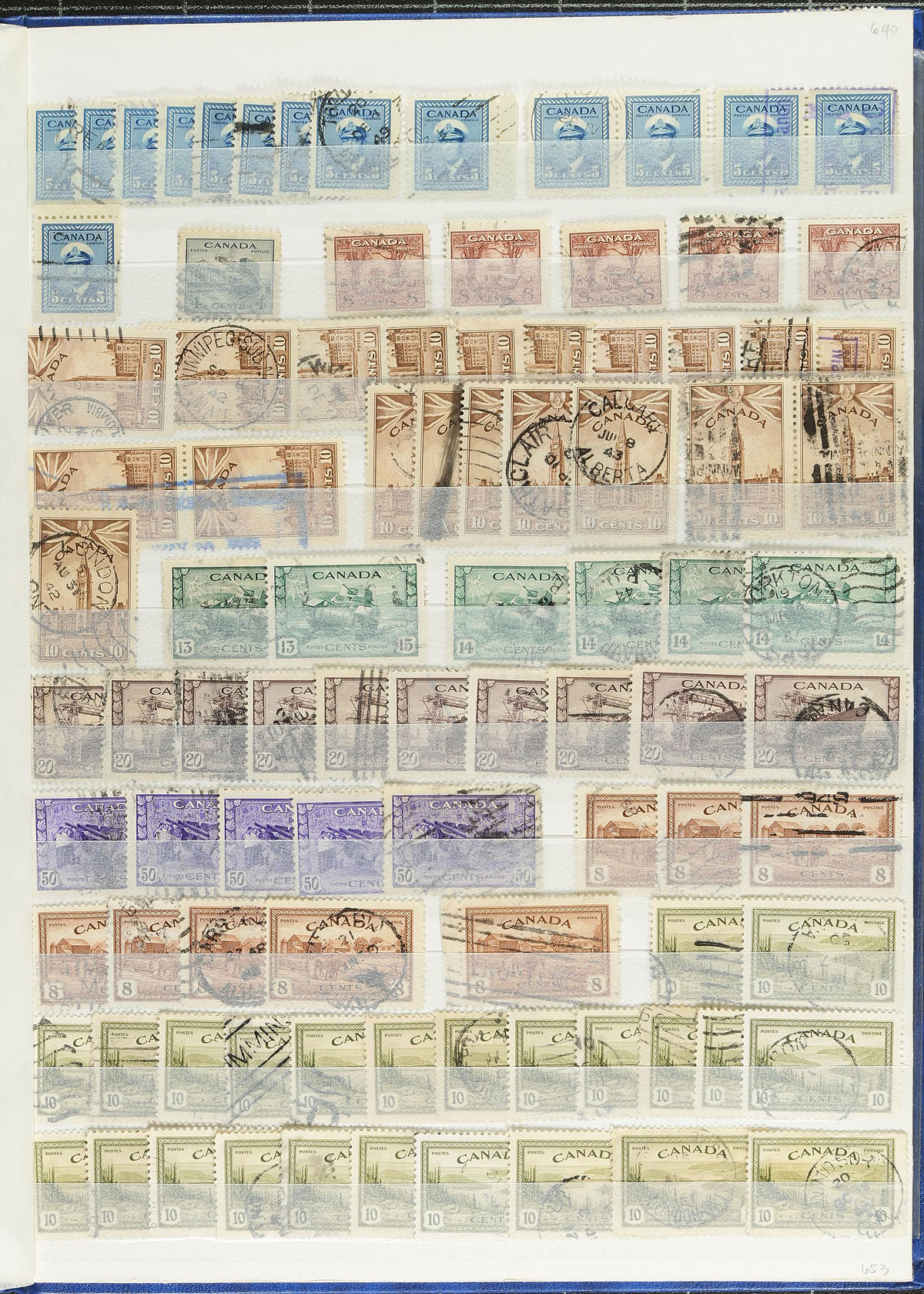 Large accumulation of used Canada, Small Queens to the 2000's. The lot contains roughly 30,000 stamps in a variety of formats including 3 stockbooks, envelopes, glassines, and bundleware. Surprisingly enough, this is a well organized accumulation with the 3 stockbooks containing material from the Small Queens to the post 2000's, noting several high value denominations, sets, earlier material, used 'P' values, souvenir sheets, etc. The lot also contains well identified envelopes, glassines and over 100 bundles of 100 stamps each, containing singles and pairs, generally from the 1950's to the 1970's. A nice lot with some better cataloguing items, and unchecked for better town cancels, overall fine to very. Estimate =