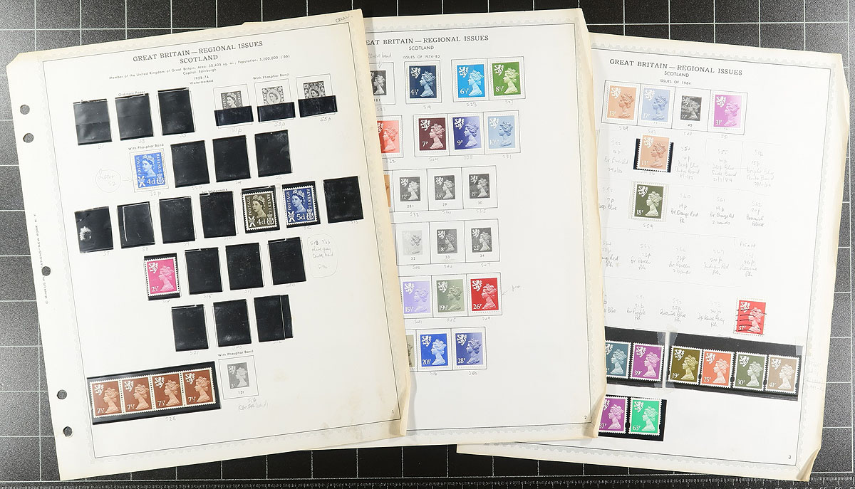 Regionals. Accumulation of mint and used Regional issues, 1950's-1990's, containing many hundreds of stamps in several album or stock pages, including a few blocks and souvenir sheets, with representation from Scotland, Wales, and Northern Ireland. Unchecked for varieties which these issues are known for, overall fine to very fine. Estimate =