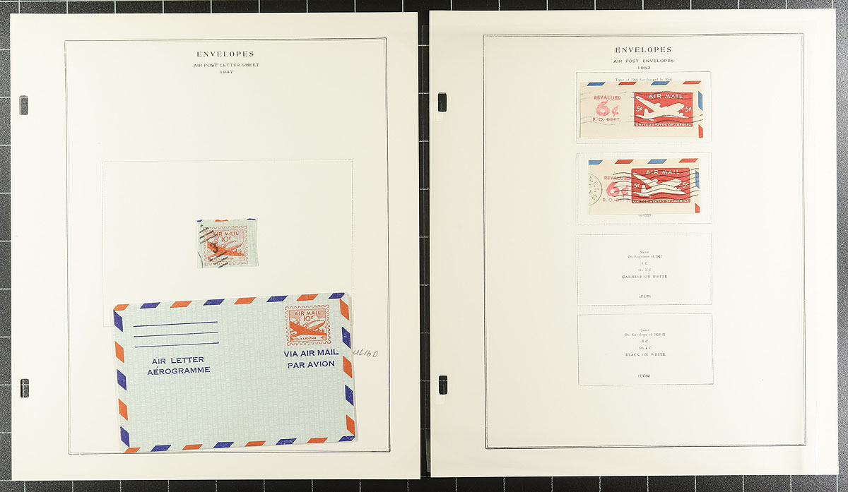 Collection of United States envelope cut squares, 1860's-1975, containing roughly 225 different items, all neatly arranged on Scott Specialty album pages. A cursory check indicated a few early items cut to shape, along with a few airmail items, and complete envelopes. A nice start to a stationery collection or to add to an existing one, a few items have been misidentified, still a nicely organized collection. Estimate =