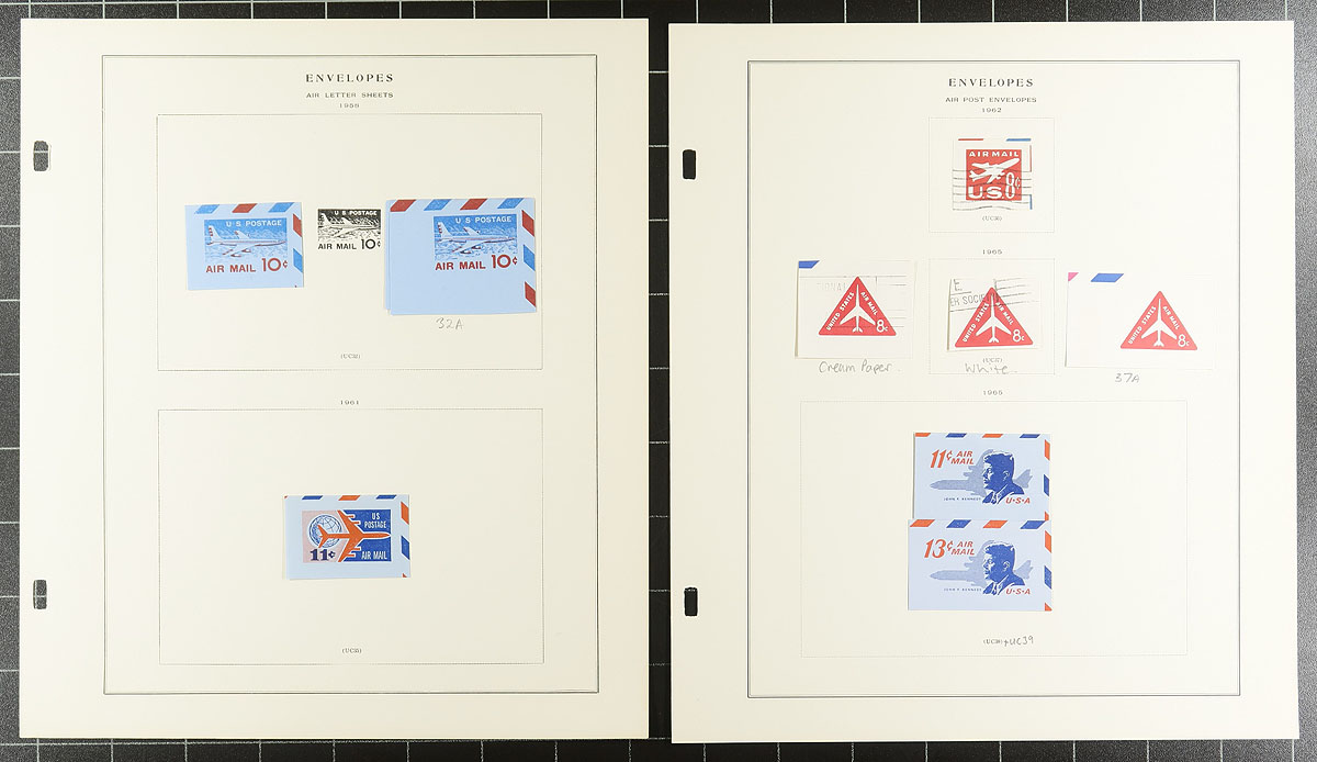 Collection of United States envelope cut squares, 1860's-1975, containing roughly 225 different items, all neatly arranged on Scott Specialty album pages. A cursory check indicated a few early items cut to shape, along with a few airmail items, and complete envelopes. A nice start to a stationery collection or to add to an existing one, a few items have been misidentified, still a nicely organized collection. Estimate =