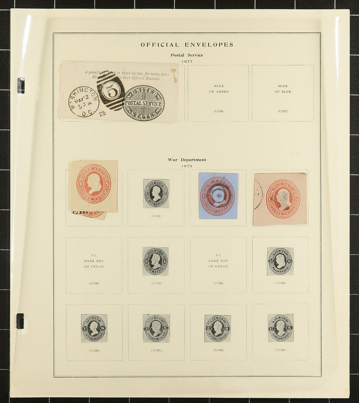 Collection of United States envelope cut squares, 1860's-1975, containing roughly 225 different items, all neatly arranged on Scott Specialty album pages. A cursory check indicated a few early items cut to shape, along with a few airmail items, and complete envelopes. A nice start to a stationery collection or to add to an existing one, a few items have been misidentified, still a nicely organized collection. Estimate =