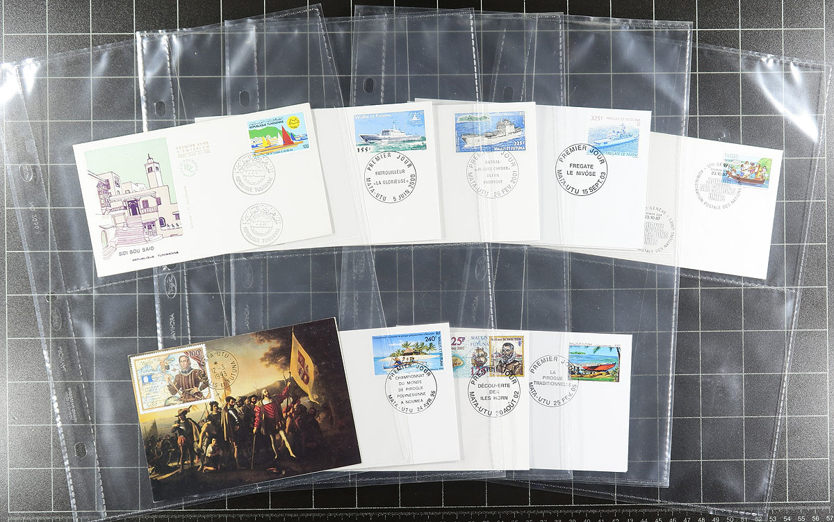 Nice collection of boats and ships on cover, containing over 200 covers housed in 2 binders. We encountered mostly commemorative or first day covers, along with a few postcards and maximum cards, with better representation from Canada and France, including French Colonies. Most of the material appears to range from the 1950's to the 1990's, with a few beyond the given range. A nice collection from this popular collecting topic. Estimate =