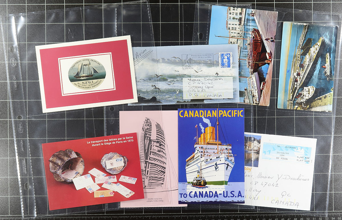 Nice collection of boats and ships on cover, containing over 200 covers housed in 2 binders. We encountered mostly commemorative or first day covers, along with a few postcards and maximum cards, with better representation from Canada and France, including French Colonies. Most of the material appears to range from the 1950's to the 1990's, with a few beyond the given range. A nice collection from this popular collecting topic. Estimate =