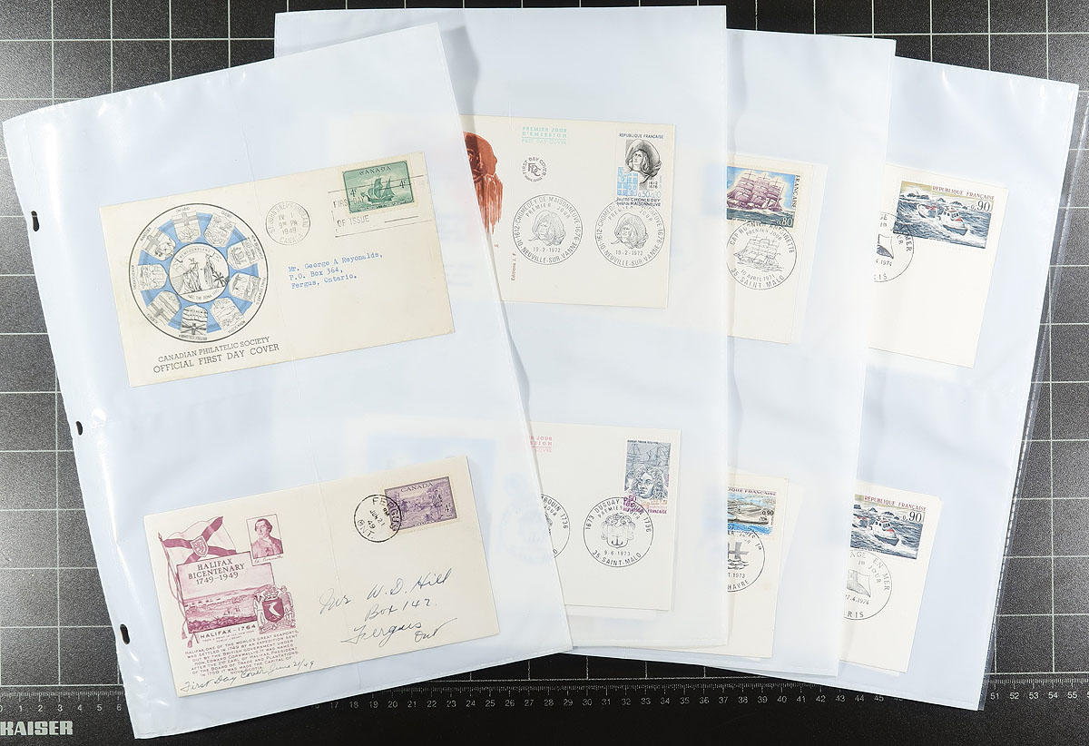 Nice collection of boats and ships on cover, containing over 200 covers housed in 2 binders. We encountered mostly commemorative or first day covers, along with a few postcards and maximum cards, with better representation from Canada and France, including French Colonies. Most of the material appears to range from the 1950's to the 1990's, with a few beyond the given range. A nice collection from this popular collecting topic. Estimate =