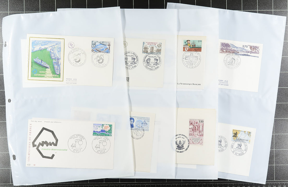 Nice collection of boats and ships on cover, containing over 200 covers housed in 2 binders. We encountered mostly commemorative or first day covers, along with a few postcards and maximum cards, with better representation from Canada and France, including French Colonies. Most of the material appears to range from the 1950's to the 1990's, with a few beyond the given range. A nice collection from this popular collecting topic. Estimate =