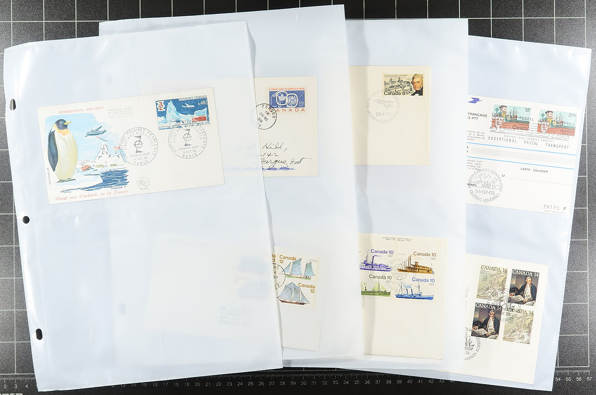 Nice collection of boats and ships on cover, containing over 200 covers housed in 2 binders. We encountered mostly commemorative or first day covers, along with a few postcards and maximum cards, with better representation from Canada and France, including French Colonies. Most of the material appears to range from the 1950's to the 1990's, with a few beyond the given range. A nice collection from this popular collecting topic. Estimate =