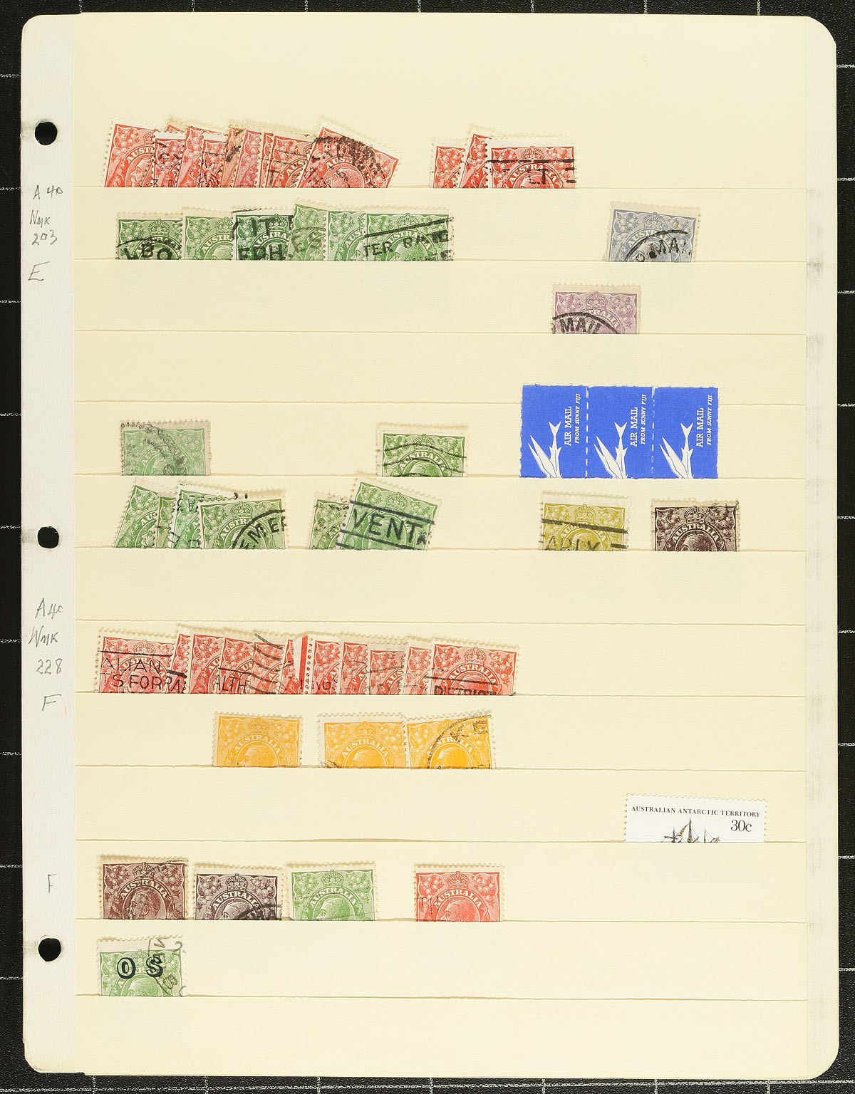 Consignment remainders of used Australia, 1913-2019, containing a few thousand stamps in a few formats including many manila stock pages, homemade pages, and a few stockbooks. A cursory check indicated a nice selection of over 50 Kangaroos, including Scott #54 (x3, c.v. $300 total), along with over 100 KGV Heads (including various shade types), and continues with a typical accumulation of stamps with strength from the 1950s to the 1980s. The lot also includes two annual collections from 2018-2019. A nice lot with for the Australia collector, overall fine to very fine. Estimate =