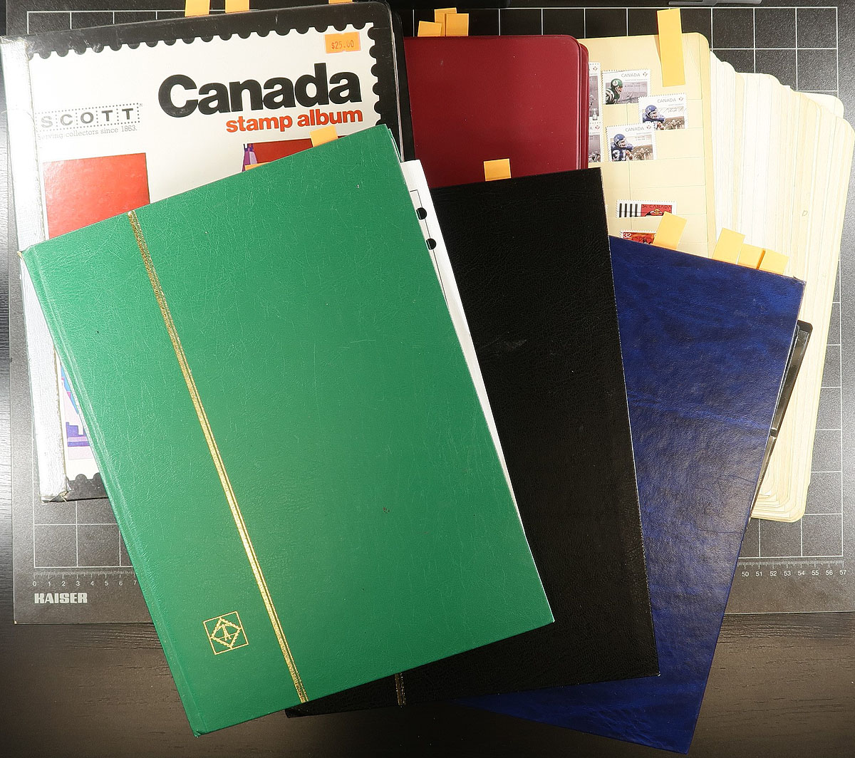 Consignment remainders of used Canada, Small Queens to 2000's, containing a few thousand stamps in 3 stockbooks, an album, and several manila stock pages. A cursory check indicated roughly 100 Small Queens (owner indicated a few shades, perforations, etc), along singles, sets, and partial sets from 1900 to roughly the 1950's, and continues with further accumulations of issues post 1980, including several 'P' value stamps. An interesting lot with some issues cataloguing $10 and up. Overall fine to very fine. Estimate =