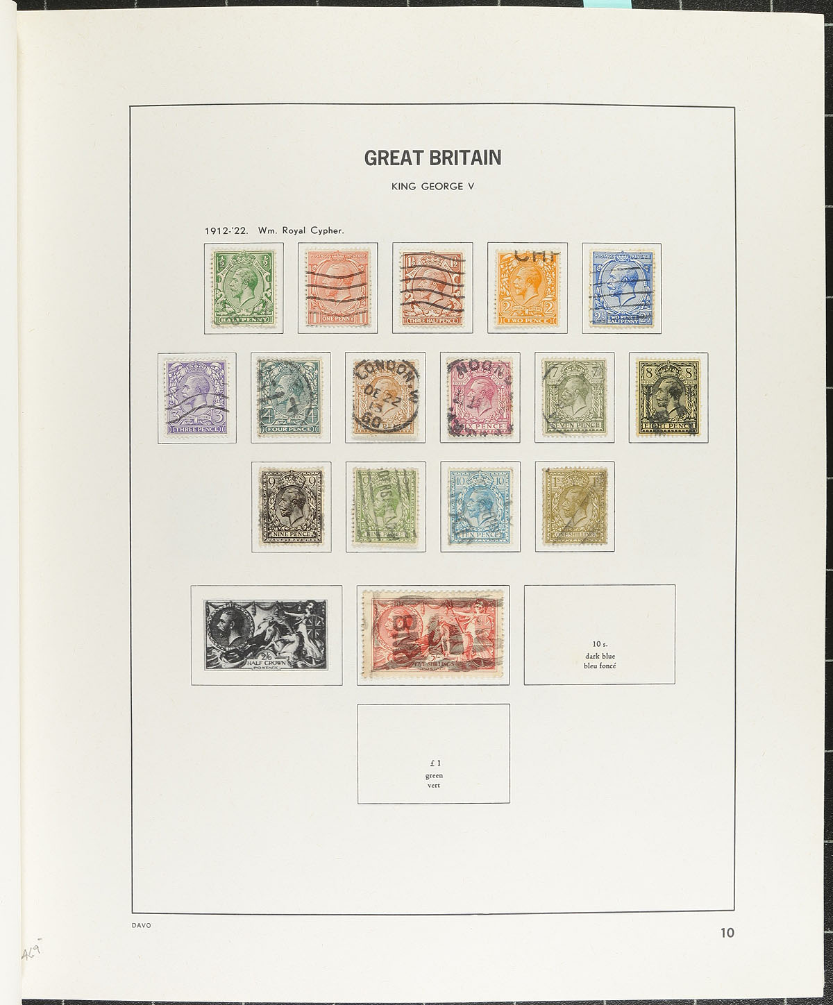Nice collection of used Great Britain, 1840-2002, containing roughly 1,700 stamps in a DAVO album. This neatly organized collection ranges from Scott #1/2135, containing singles, sets, and partial sets, beginning with roughly 50 different Victorian issues noting better with #s 1 Penny Black (position MG, 2 margins, c.v. $375), 3-4, 26-28, 42, 44, 59, 73, 100-107, along with partial sets of Edwards, KGV and KGVI, including a few Seahorses. Owner's 2026 Scott catalogue value totals US$9,332.00 (counting up to 1961 only), noting a few stamps cataloguing $20 and up. A nice start to a classic Great Britain collection. A few faults expected with a few of the early issues, overall fine to very fine. 2026 Scott US$9,332.00 =