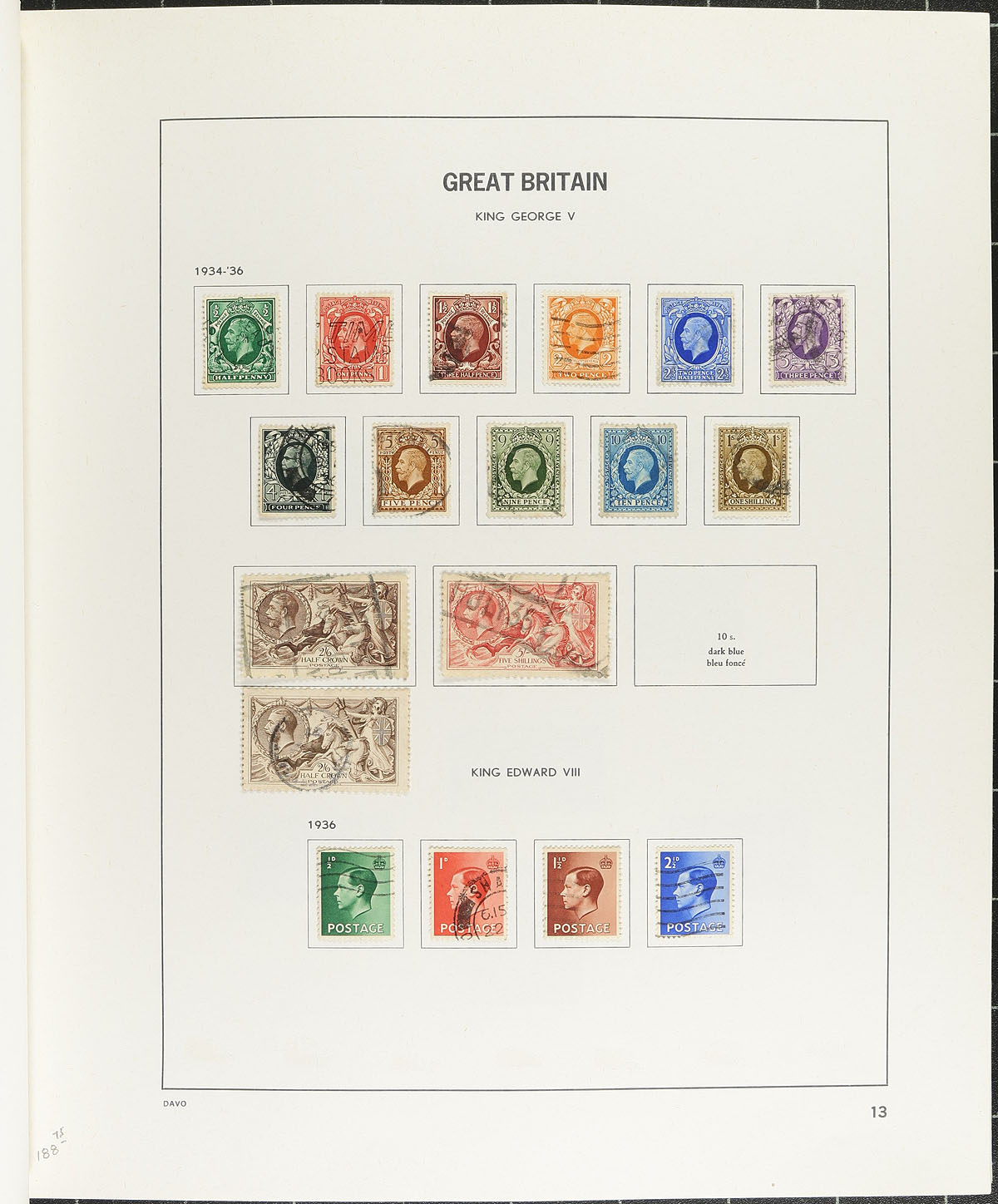 Nice collection of used Great Britain, 1840-2002, containing roughly 1,700 stamps in a DAVO album. This neatly organized collection ranges from Scott #1/2135, containing singles, sets, and partial sets, beginning with roughly 50 different Victorian issues noting better with #s 1 Penny Black (position MG, 2 margins, c.v. $375), 3-4, 26-28, 42, 44, 59, 73, 100-107, along with partial sets of Edwards, KGV and KGVI, including a few Seahorses. Owner's 2026 Scott catalogue value totals US$9,332.00 (counting up to 1961 only), noting a few stamps cataloguing $20 and up. A nice start to a classic Great Britain collection. A few faults expected with a few of the early issues, overall fine to very fine. 2026 Scott US$9,332.00 =