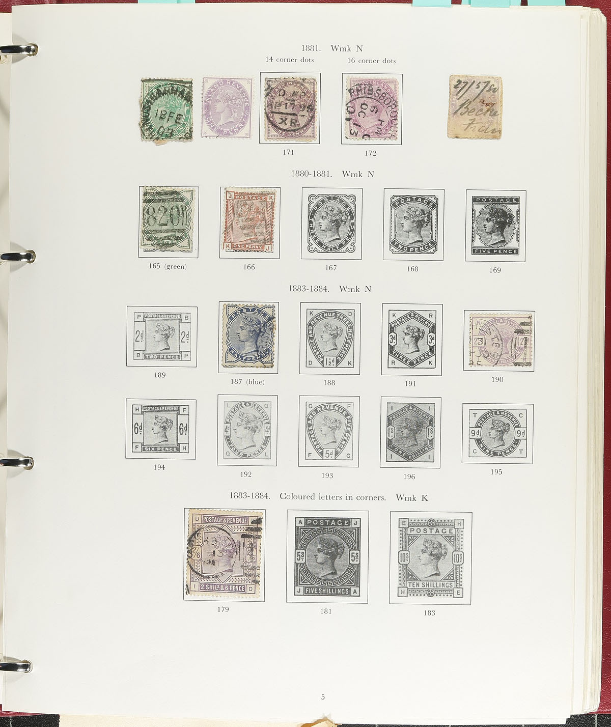 Collection of mint and used Great Britain, 1841-1988, containing many hundreds of stamps in a Stanley Gibbons album. The collection ranges from Scott #3/1238, including roughly 30 Victorain issues, along with singles, sets, and partial sets, noting a few better issues with #s 3, 27, 34, 51, 64, along with a few other stamps cataloguing $20 and up. The collection primarily contains used stamps up to 1935, with a mixture of mint and used to 1970s, with primarily never hinged singles and sets thereafter. A nice starter collection from this popular collecting country, overall fine to very fine. Estimate =