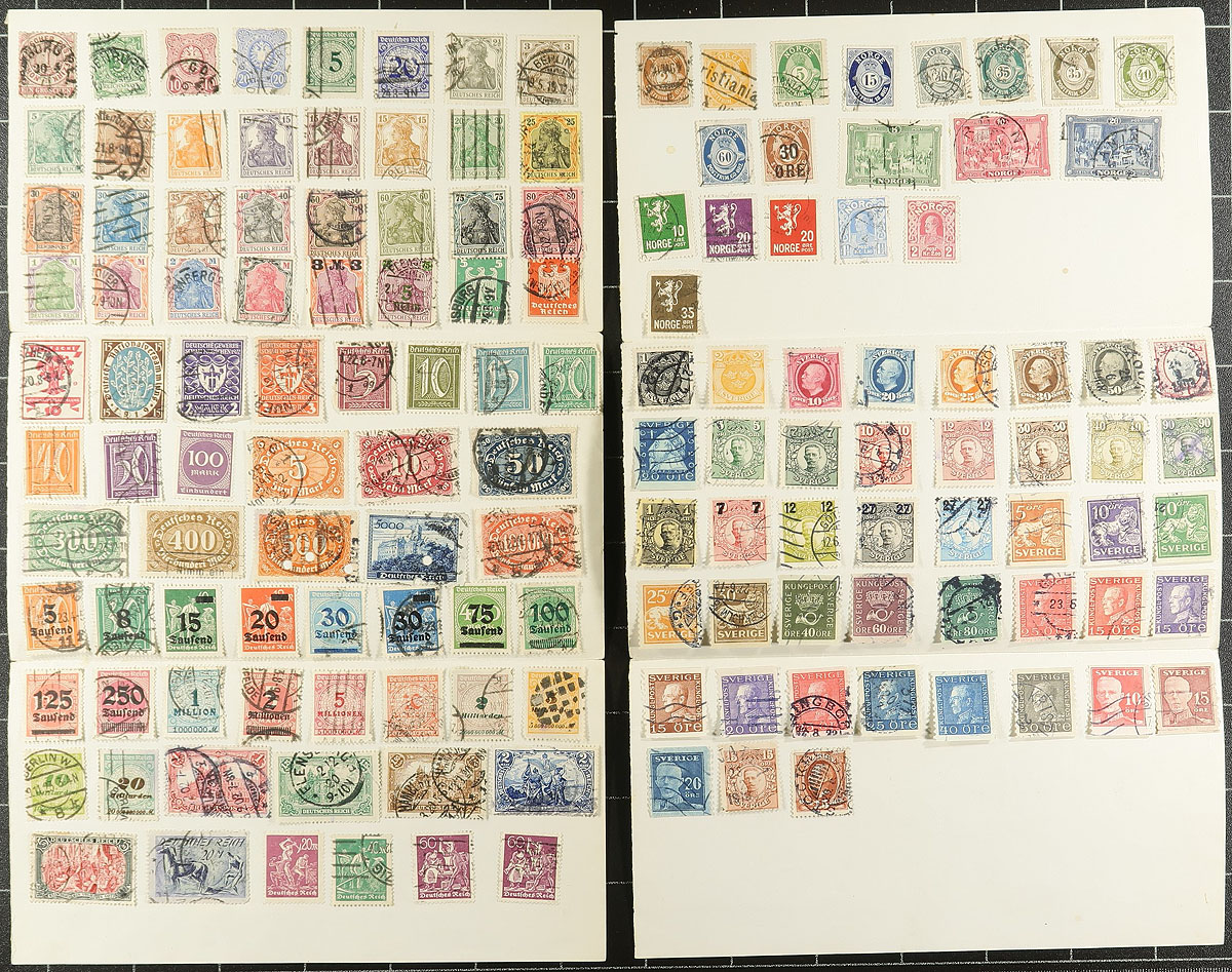 Consignment remainders of thousands of used worldwide stamps filling a bankers box. The lot contains the majority of material in 3 Harris and a Minkus album, generally containing stamps from A to I countries, with special consideration given to Canada (including post-2000 issues), along with France, Germany, and other European countries. The lot also includes a few Canada annual collections (noting 2000 Millenium, and from 1999), and the postage stamps from China 2010. A few faults noted, still a nice lot for the Canada and worldwide collector. Estimate =