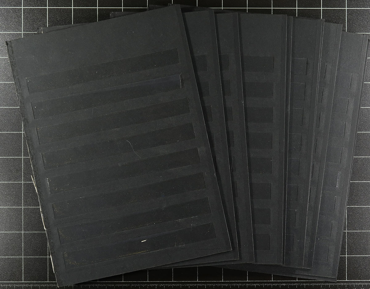 Nice grouping of useful supplies in a box, including 3 stockbooks (some stamps inside), several manila stock pages, 9 packs of Vario-style stock pages in various configurations (almost all still unopened and sealed), many stamps mounts with guillotine, along with various other supplies. Gently used to brand new condition and still useful for the new owner. Estimate =