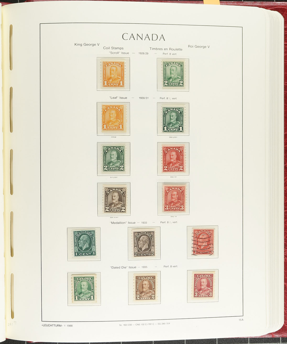 Comprehensive collection of mint and used Canada and BNA, 1859-1980, containing many hundreds of stamps in a lovely Lighthouse hingeless album with slipcase. The Canada collection ranges from Scott #15/877, but essentially begins with a small selection of mint and used Small Queens, a few mint Jubilees (including 8c, nh, with small crease in lower corner), and continues with mint and or used partial sets of Leafs, Numerals, and Edwards. The collection then predominantly becomes a mint collection with partial sets of Quebecs, Admirals, Scrolls and Arch issues, with the majority of stamps thereafter being never hinged including sets of Medallions (c.v. $279 total), 1935 Pictorials ($182 total), and War issues ($180 total). Just a few of the better stamps include Scott #s 100 (nh, $475), 115, 117, 119 (all nh, $540 total), 157 (nh, $120), C1-C4 (nh, $224 total), along with singles and sets cataloguing $20 to $40 and up. Owner's Scott 2026 catalogue value for Canada totals $10,961.00. The collection also includes roughly 250 BNA stamps with strength in Newfoundland, containing roughly 200 stamps in total, with singles, sets, and partial sets from 1865 to 1947, including a few airmail issues, noting Scott #183-199 (c.v. $133 total), along with some material cataloguing $20 and up. Owner's Scott 2026 catalogue value for the BNA stamps totals $5,631. Total 2026 catalogue value for the entire collection is $16,592. A lovely opportunity to build a classic Canada collection. A few small faults with a few of the early stamps, including a few having no gum, overall fine to very fine. Total catalogue value US$16,592.00 ($22,399.20 CDN). Estimate =