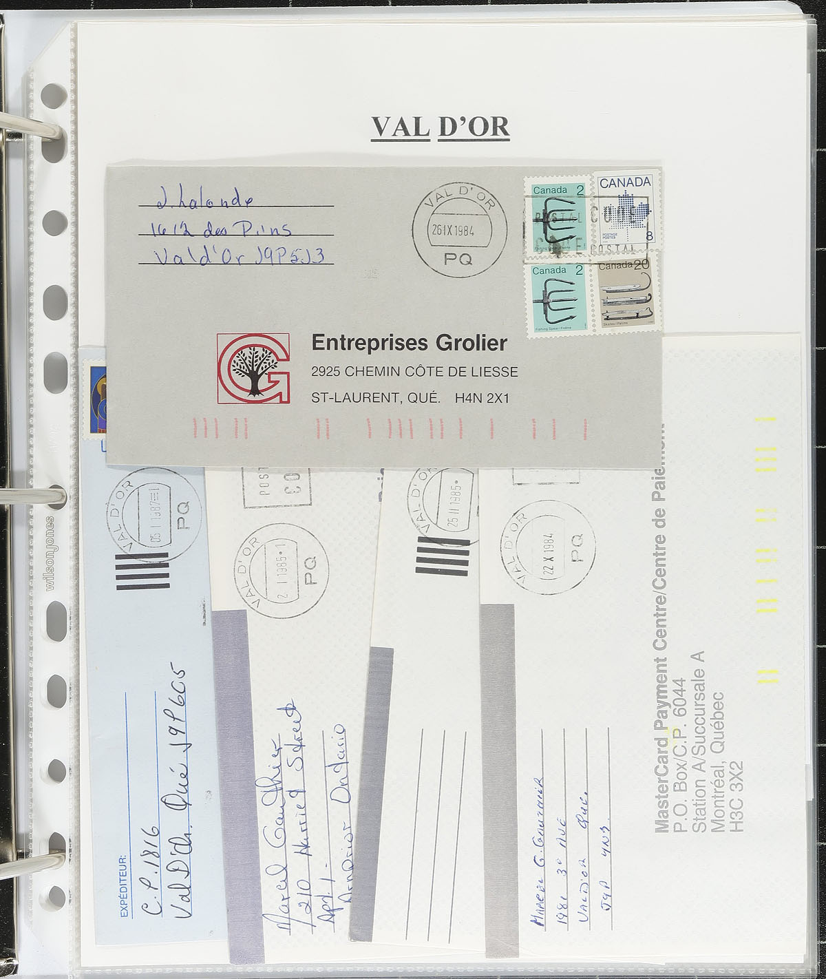 Interesting collection of Klussendorf postmarks in 6 binders, containing many hundreds of covers and some material on piece, generally ranging from the mid 1980's to the mid 1990's. The collection has better representation from Quebec in 2 thick binders, covering towns from A to Z, along with a thick binder of British Columbia, along with smaller representation from Alberta, Nova Scotia, and New Brunswick, with each town generally having 4 to 10 covers each (noting various frankings and rates), and includes slogans, inverted slugs, and date errors for some postmarks. The collection also includes a binder of cancel information which includes earliest known dates, known time marks, serial numbers, and more. A nice starter collection and a nice start to a potential exhibit. Estimate =