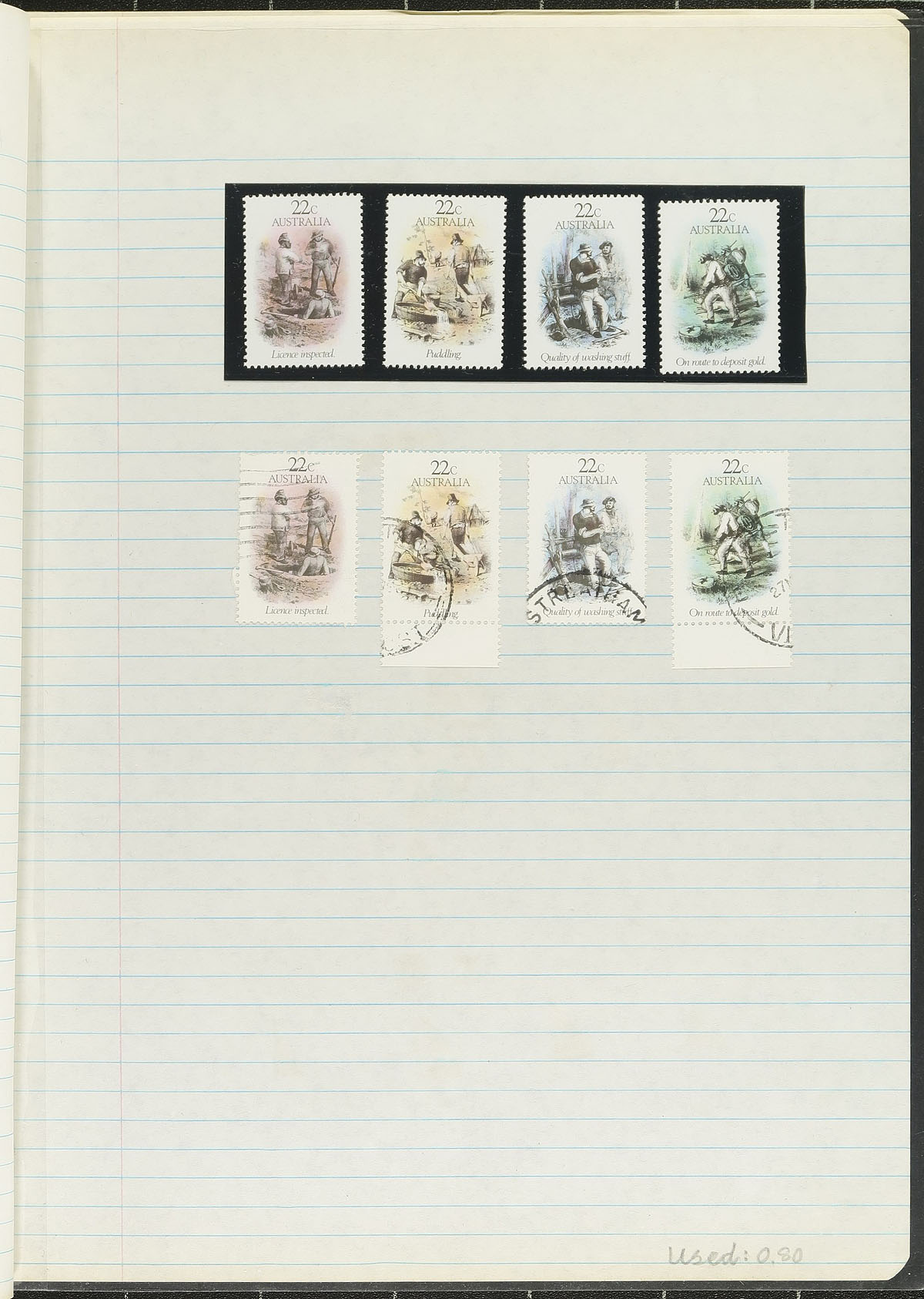 Collection of never hinged and used Australia, 1966-1992, containing over 1,350 stamps in many homemade pages. This nicely organized collection ranges from Scott #394/1261, containing primarily sets, with used material hinged onto pages, and mint material primarily in hingeless mounts and in a few photo corners. The owner's older Scott catalogue for the used material only catalogue US$507.00, and face value totals AUD$240.00, leaving room for a higher catalogue value once the mint is accounted for. A nice starter lot from this popular collecting country, overall fine to very fine. Estimate =