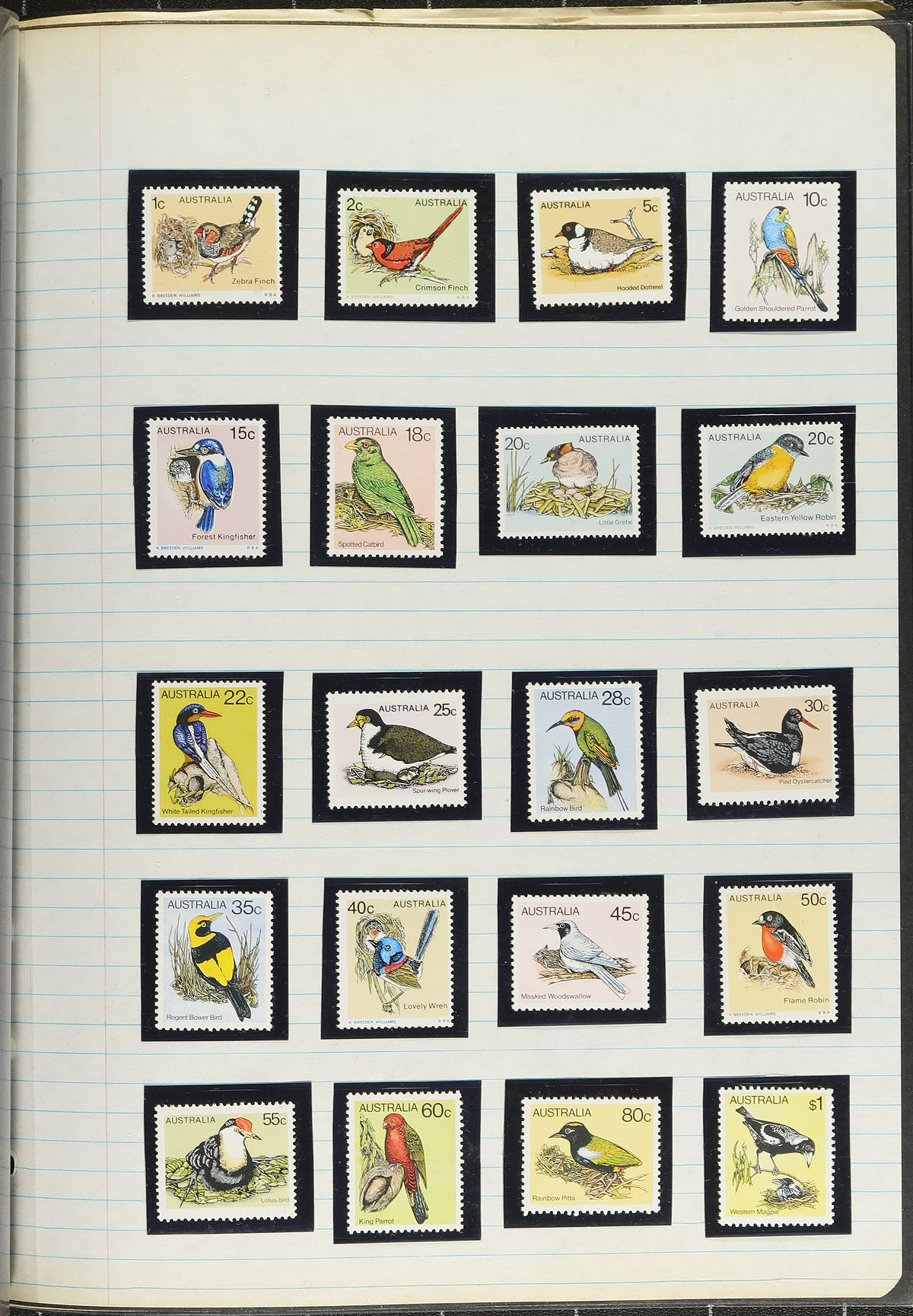 Collection of never hinged and used Australia, 1966-1992, containing over 1,350 stamps in many homemade pages. This nicely organized collection ranges from Scott #394/1261, containing primarily sets, with used material hinged onto pages, and mint material primarily in hingeless mounts and in a few photo corners. The owner's older Scott catalogue for the used material only catalogue US$507.00, and face value totals AUD$240.00, leaving room for a higher catalogue value once the mint is accounted for. A nice starter lot from this popular collecting country, overall fine to very fine. Estimate =