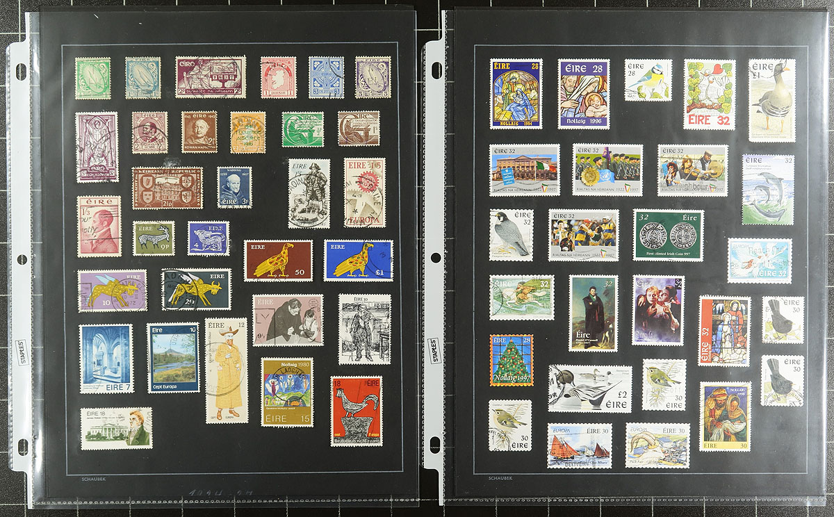 Accumulation of used Ireland, 1922-2009, containing a few thousand stamps in roughly 20 stock pages. The lot generally ranges from Scott #1/1832, including several sets, and a few back of the book issues, noting a few sets cataloguing $10 and up. A nice lot for collectors and dealers, and especially topical / thematic enthusiasts as we spotted a number of suitable subjects. Overall fine to very fine. Owner's 2019 Scott US$1,716.00 =