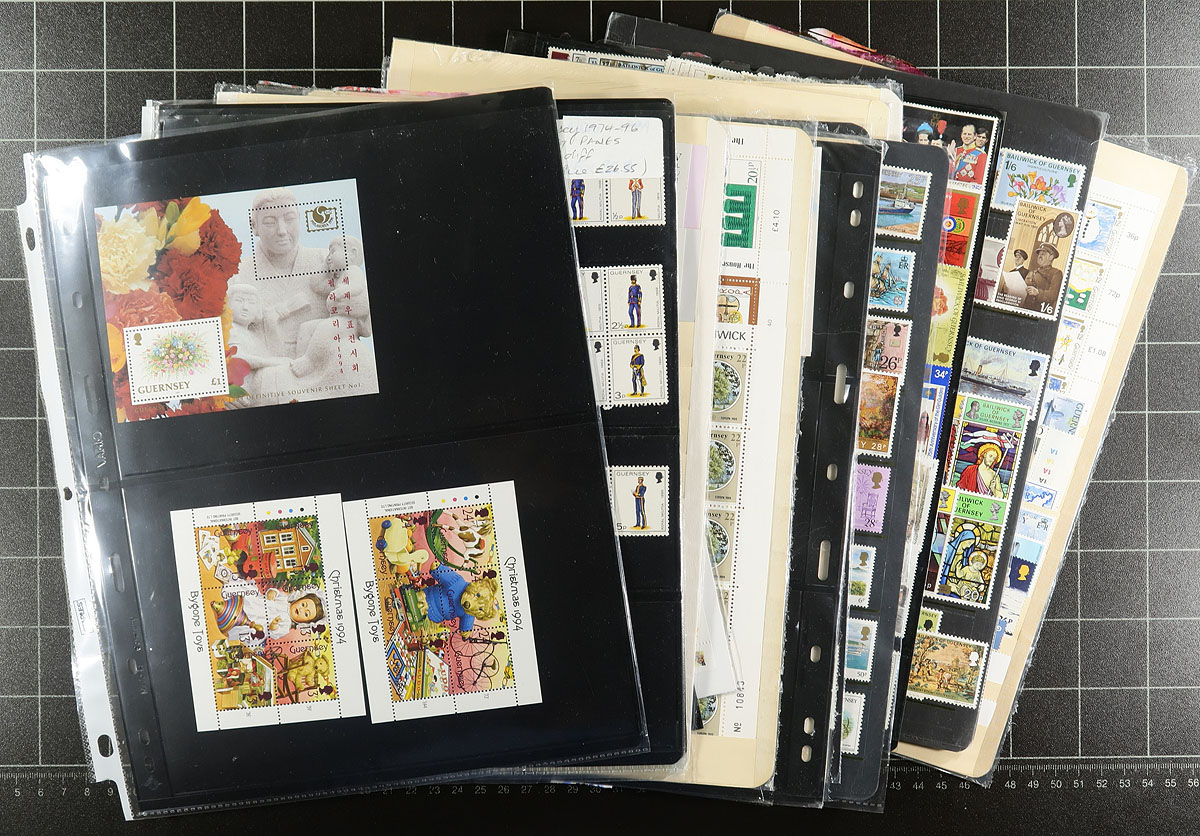 Collection / accumulation of primarily never hinged Guernsey, 1958-2005, containing many hundreds of stamps in over 20 stock pages. The lot generally ranges from Scott #8/874, containing many sets, along with booklets, souvenir sheets, and booklet panes. Some of the material catalogues $10 and up, with the owner's 2018 Scott catalogue value for the lot totaling US$1,196.00. A nice clean lot for all collectors. Estimate =