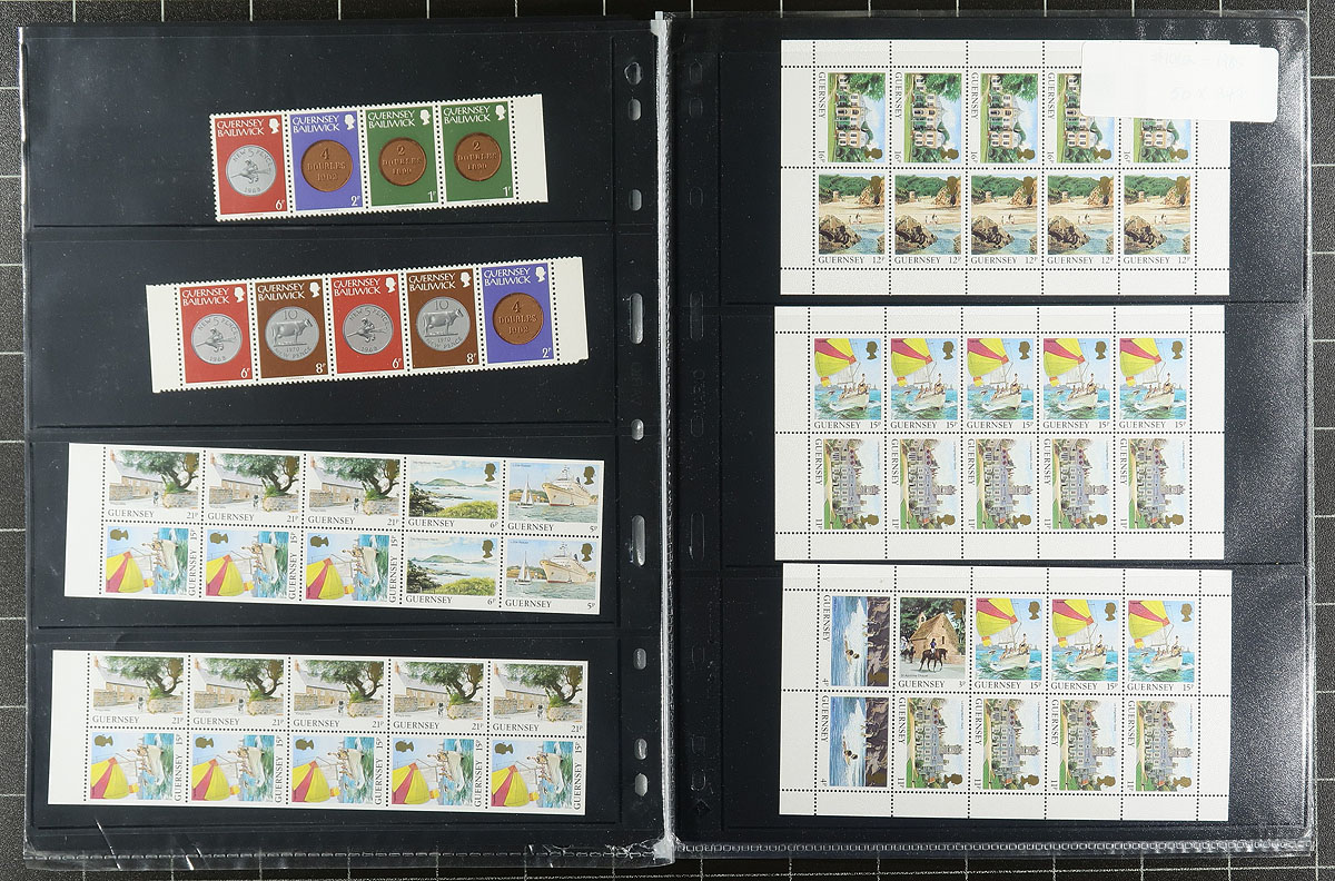 Collection / accumulation of primarily never hinged Guernsey, 1958-2005, containing many hundreds of stamps in over 20 stock pages. The lot generally ranges from Scott #8/874, containing many sets, along with booklets, souvenir sheets, and booklet panes. Some of the material catalogues $10 and up, with the owner's 2018 Scott catalogue value for the lot totaling US$1,196.00. A nice clean lot for all collectors. Estimate =