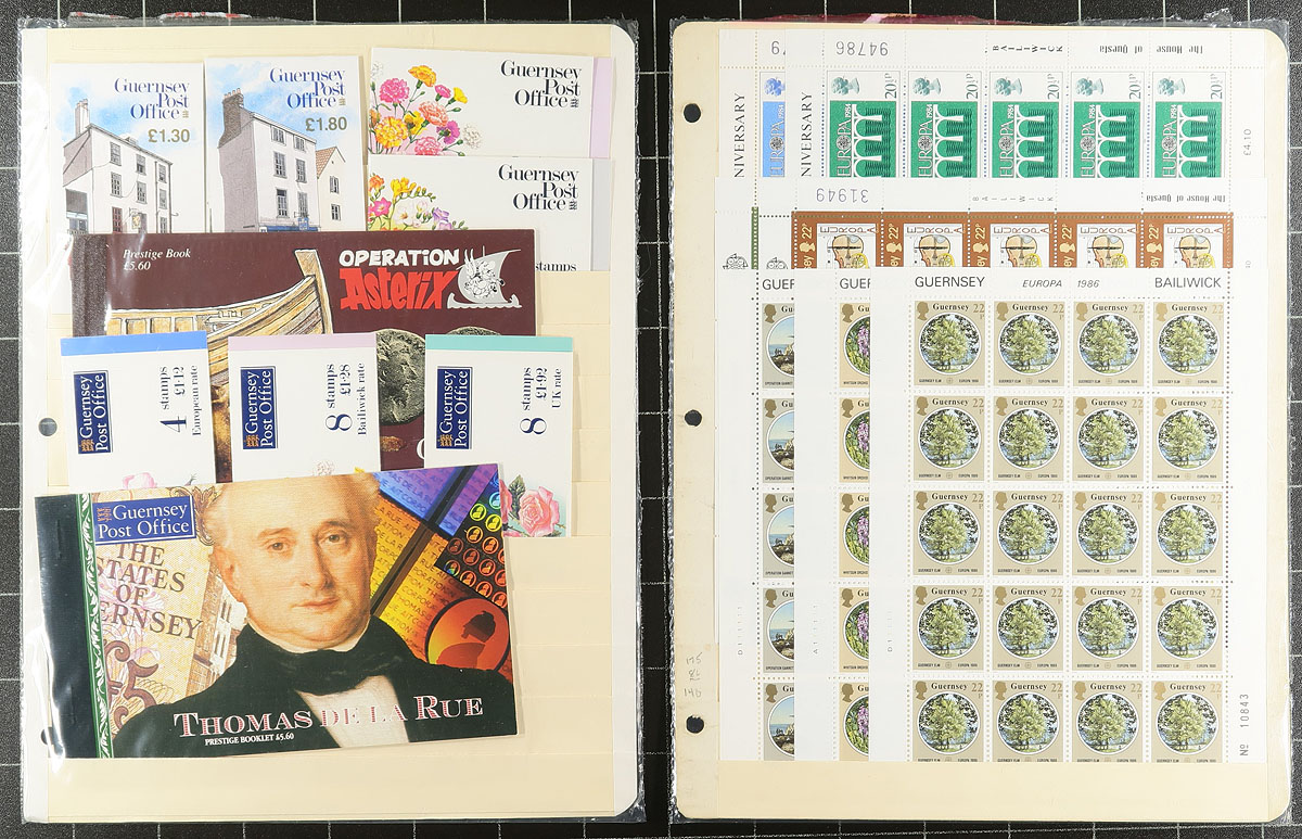Collection / accumulation of primarily never hinged Guernsey, 1958-2005, containing many hundreds of stamps in over 20 stock pages. The lot generally ranges from Scott #8/874, containing many sets, along with booklets, souvenir sheets, and booklet panes. Some of the material catalogues $10 and up, with the owner's 2018 Scott catalogue value for the lot totaling US$1,196.00. A nice clean lot for all collectors. Estimate =