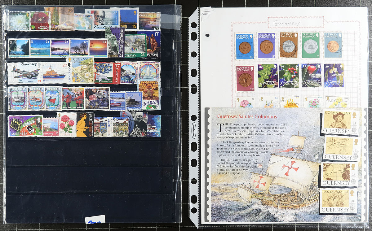 Collection / accumulation of used Guernsey, 1969-2015, containing many hundreds of stamps in many stock pages and a small stockbook. The lot generally ranges from Scott #8/1281, containing singles and a few sets (all appearing to have cto cancels), with some material cataloguing $5 and up. Owner's 2015 Scott catalogue value for the lot totals US$1,557.00. A nice lot for all collectors as used material is offered less often as mint material, overall fine to very fine. Estimate =