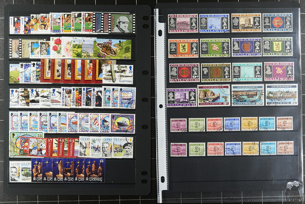Collection / accumulation of used Guernsey, 1969-2015, containing many hundreds of stamps in many stock pages and a small stockbook. The lot generally ranges from Scott #8/1281, containing singles and a few sets (all appearing to have cto cancels), with some material cataloguing $5 and up. Owner's 2015 Scott catalogue value for the lot totals US$1,557.00. A nice lot for all collectors as used material is offered less often as mint material, overall fine to very fine. Estimate =