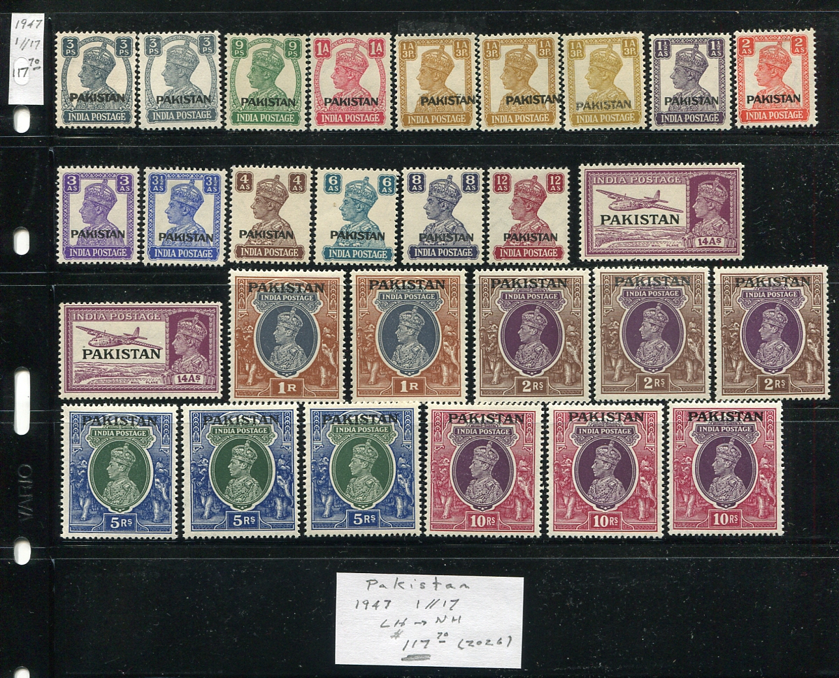 A mint collector's assemble Pakistani issues 1947-1976 ranging from the India overprinted issues, and through Independence, including "Back of the Book" issues. Lightly Duplicated. The earlier material is mostly Lightly Hinged, eventually transitioning to Never Hinged. Included some local overprints, not listed in Scott Catalogue (and not counted here). 2026 Scott US$284.25 =
