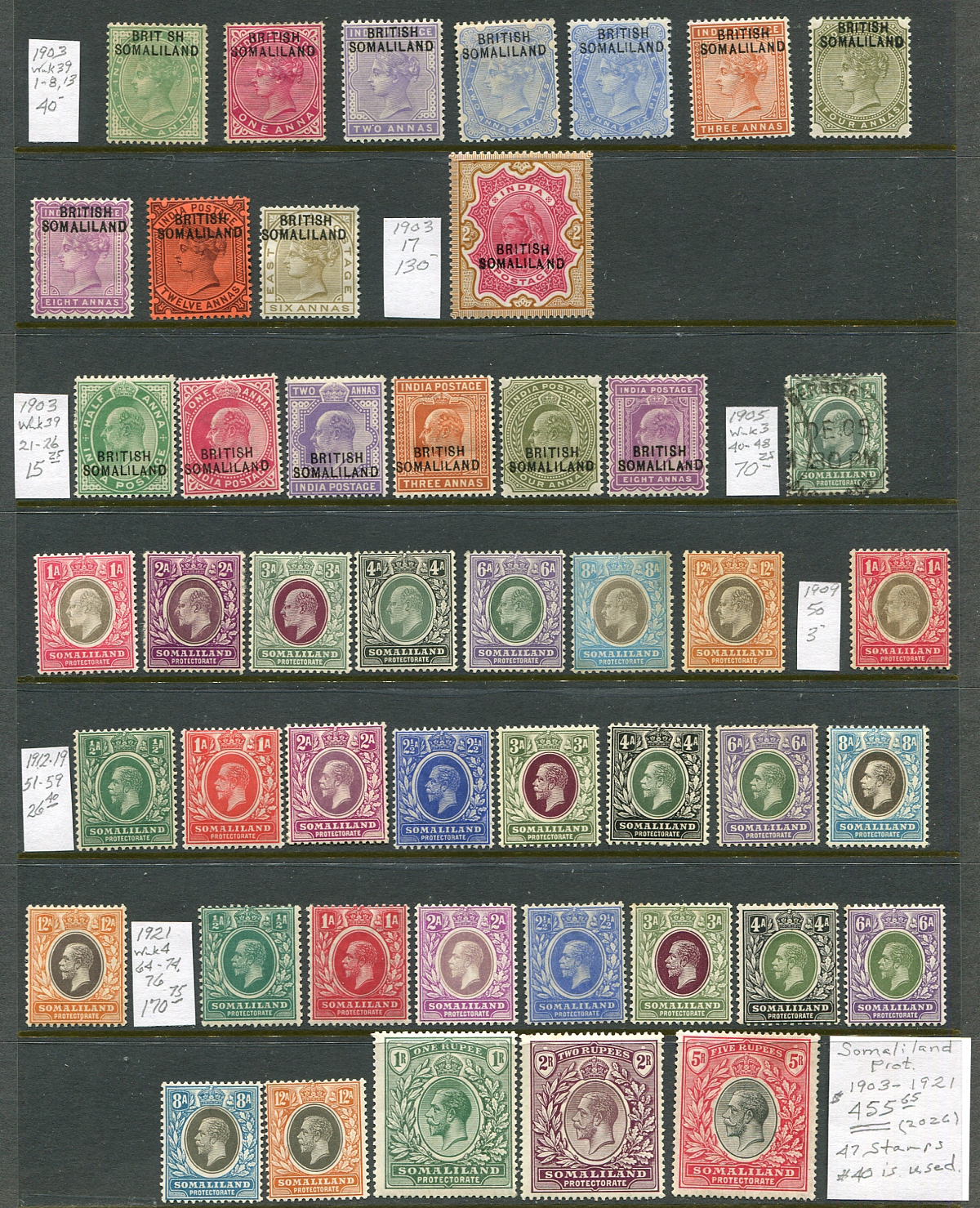 Stunning mint hinged assembly of 1903-1921 Queen Victoria / Edward VII / George V issues, including high-values, all arranged and identified on a single stockpage. Includes on used stamp (#40). A lovely assembly of this popular area of collecting. 2026 Scott US$455.65 =
