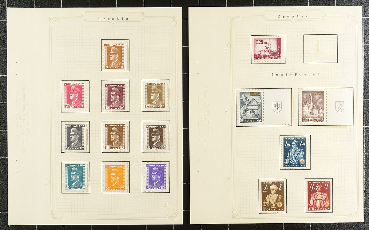A mostly mint (Lightly Hinged) assembly of 1941-1944 issues, including "back of the book" postage dues, semi-postals, officials and postal tax. All arranged on old-time album pages and stocksheets. Total 2026 Scott US$350.85 =