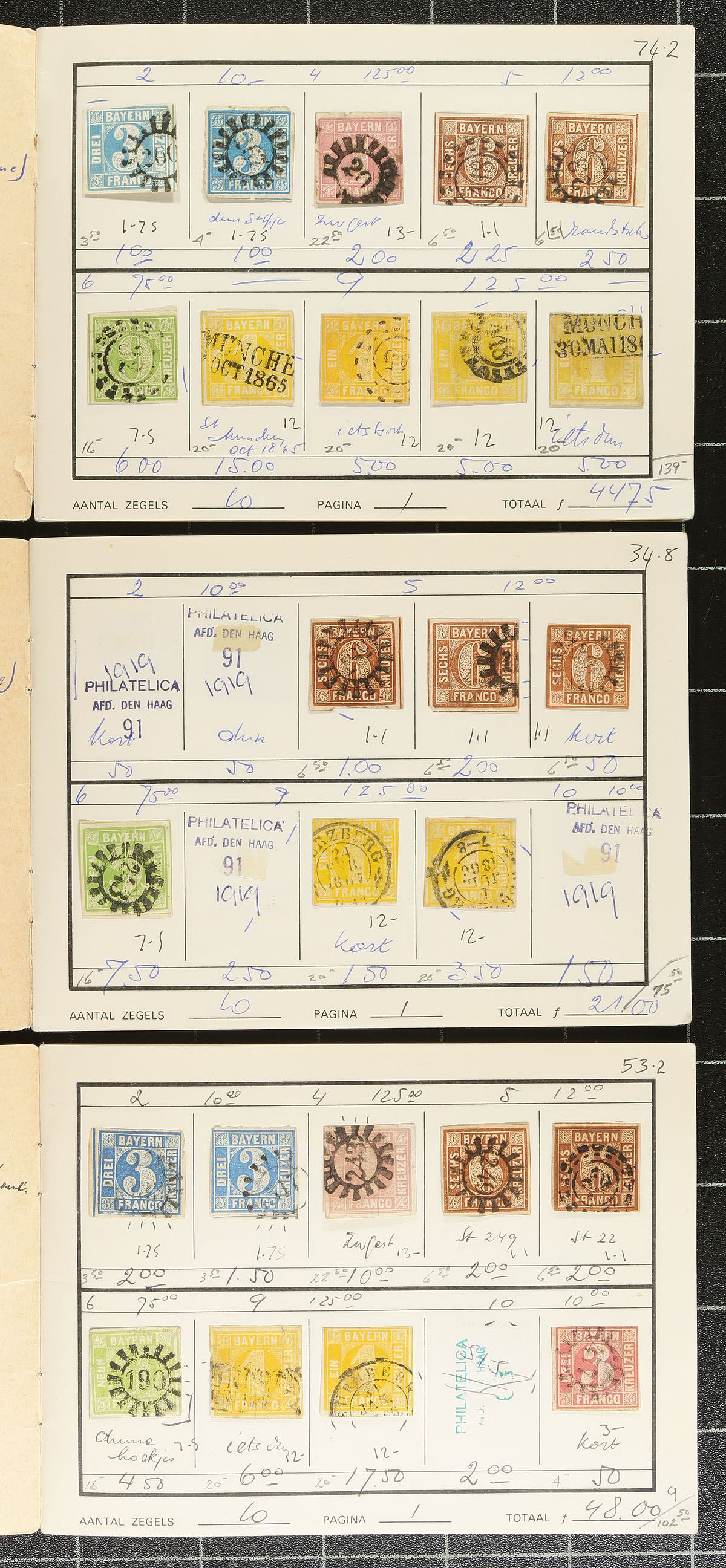 An old-time group of three retired circuit books, containing 386 stamps (mostly used) from the 1849-1920 period. These last saw the light of day in 1982! All pages imaged to give a full representation of what this lot contains. Expect the odd small fault, but overall very clean material, with lots of postmark interest. We have updated the catalogue prices in pencil below each stamp. 2026 Scott US$2,663.50 =